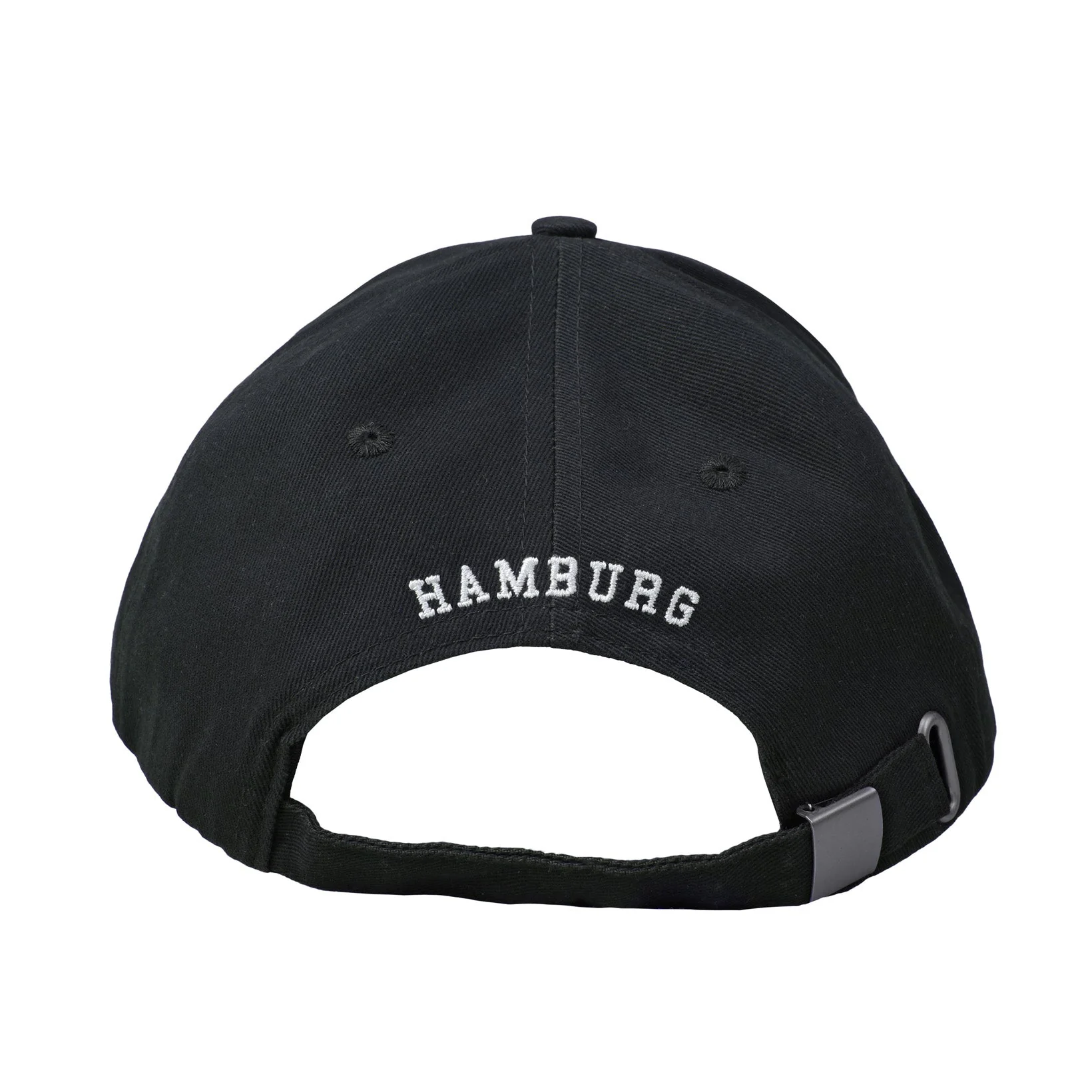 Hochwertige Basecap mit stabilem Schirm bestehend aus 6 Bahnen mit gestepptem H² Logo vorne, sowie dem gesteppten Schriftzug Hamburg auf der Hinterseite.