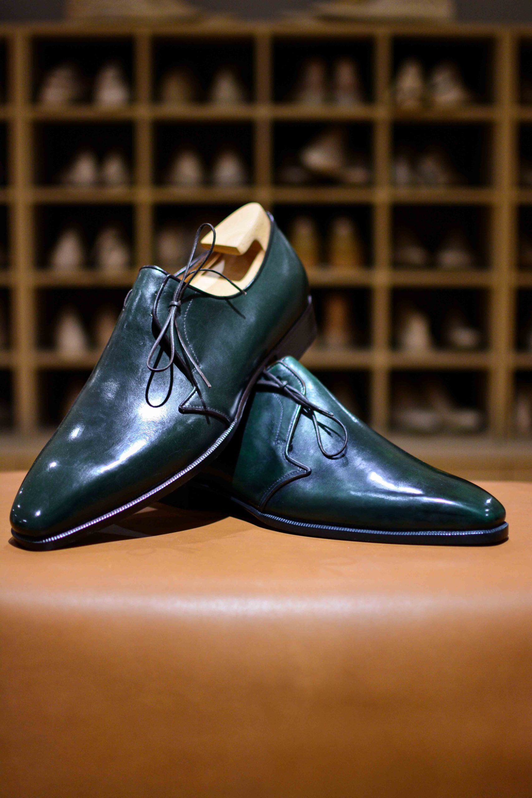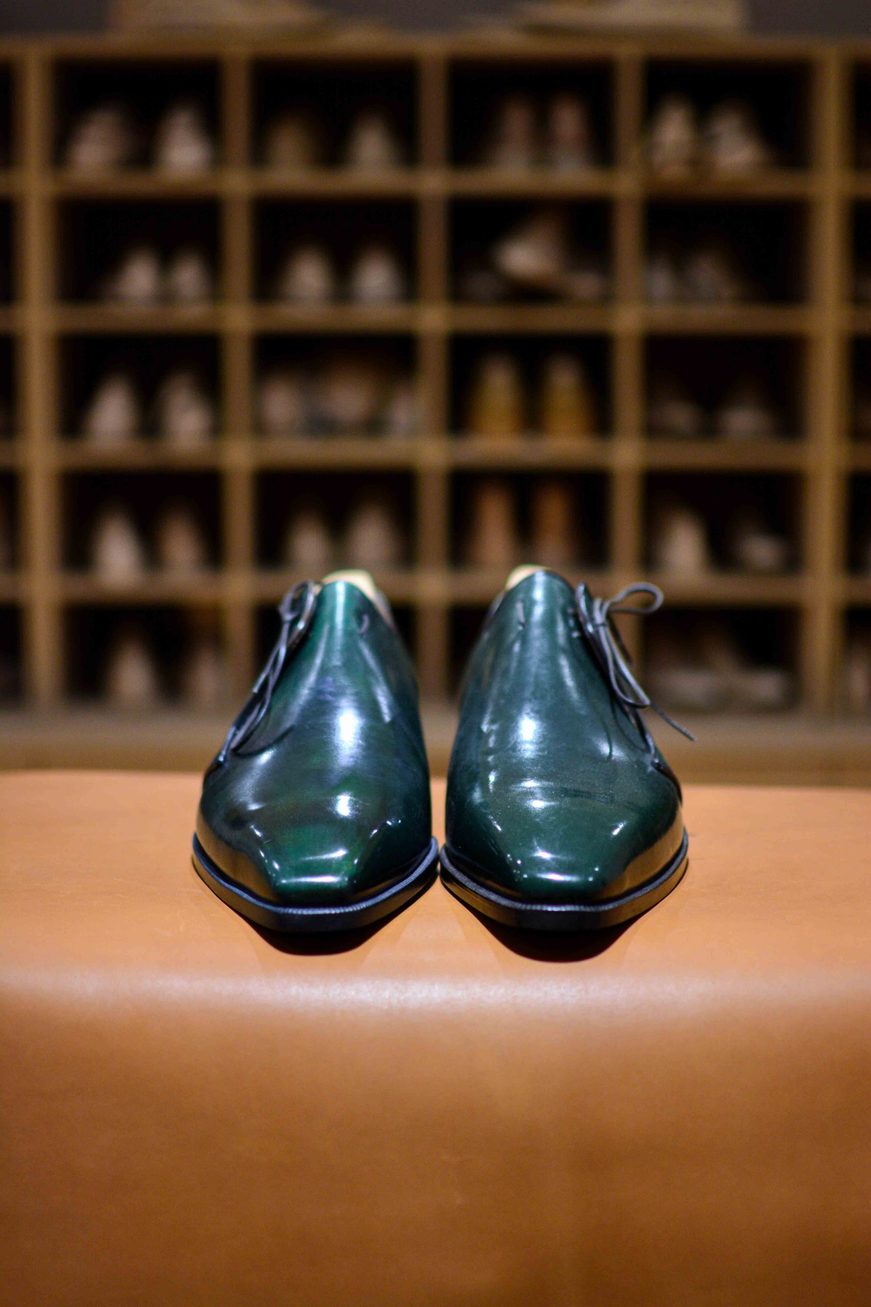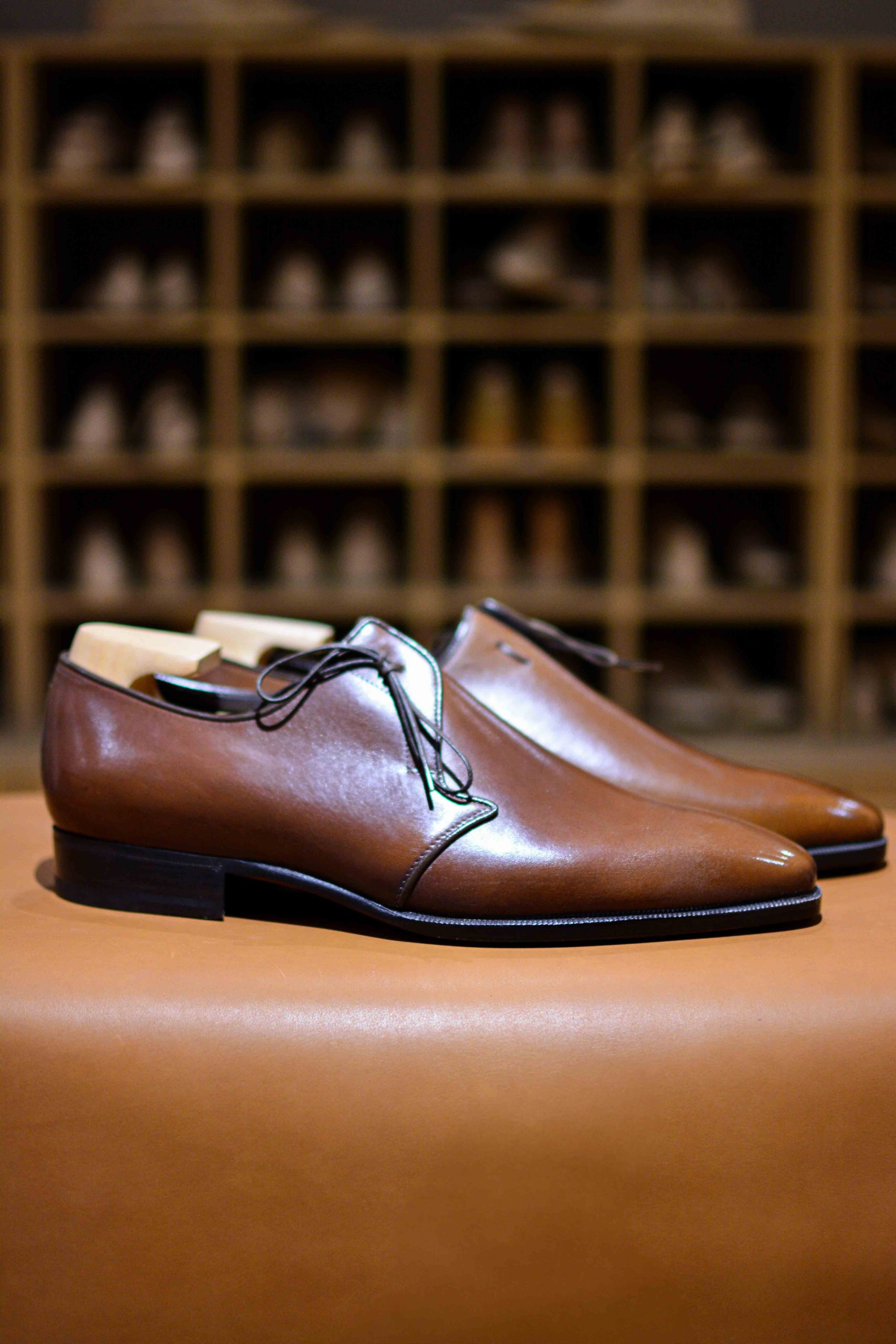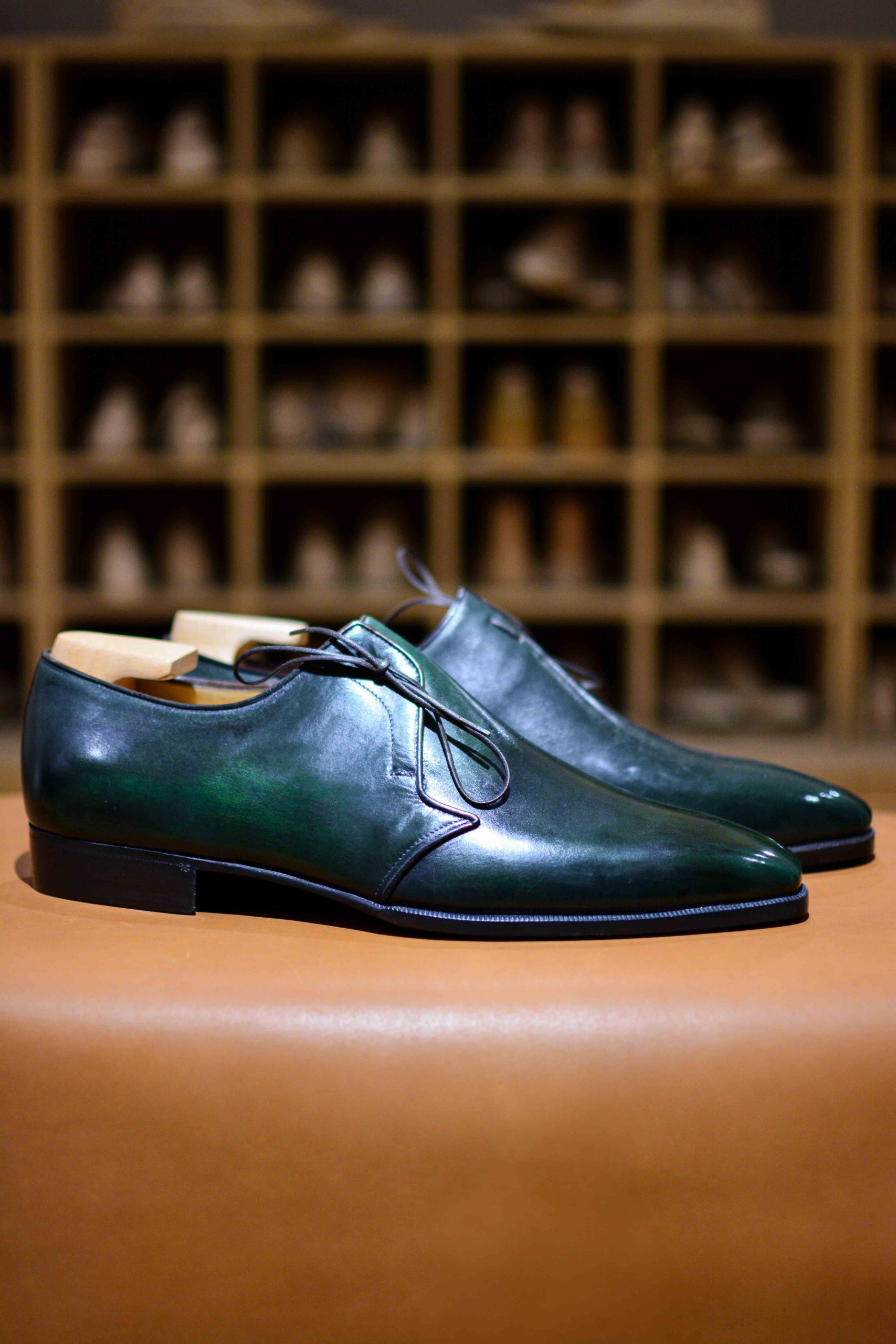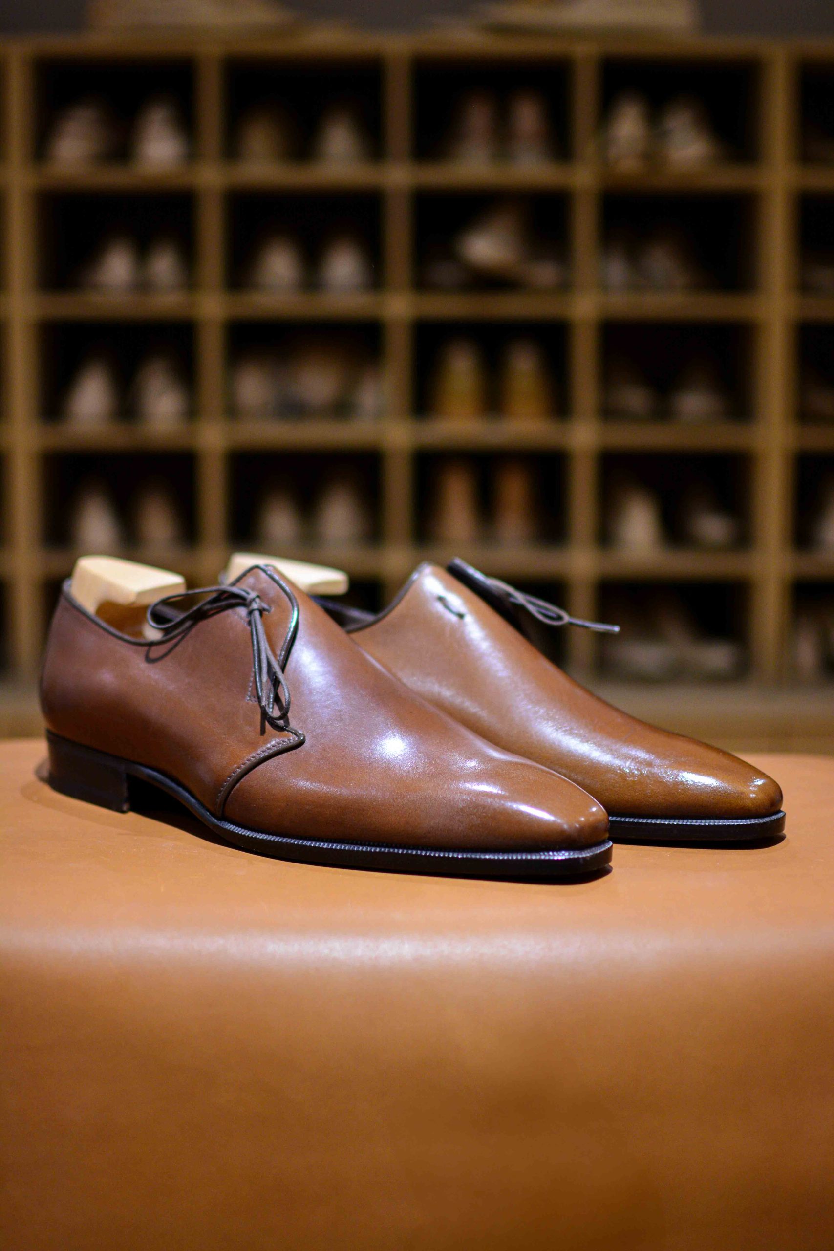 Son unique laçage et son empeigne unie à la ligne d’une grande pureté en fait un soulier vraiment exceptionnel qui ne ressemble à aucun autre.