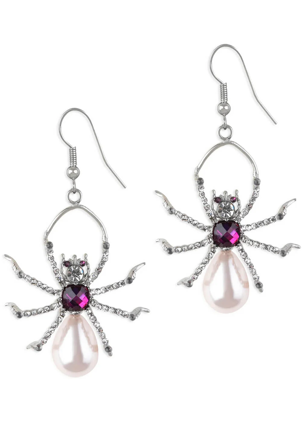 Une araignée élégante, ornée d’une perle synthétique et de cristaux couleur améthyste, se balance de façon séduisante à chaque mouvement sous l’oreille — glamour, mystérieuse et délicieusement dramatique. Ces araignées aiment se blottir près de vos oreilles ♥