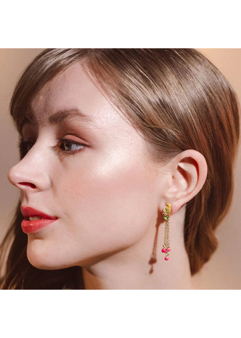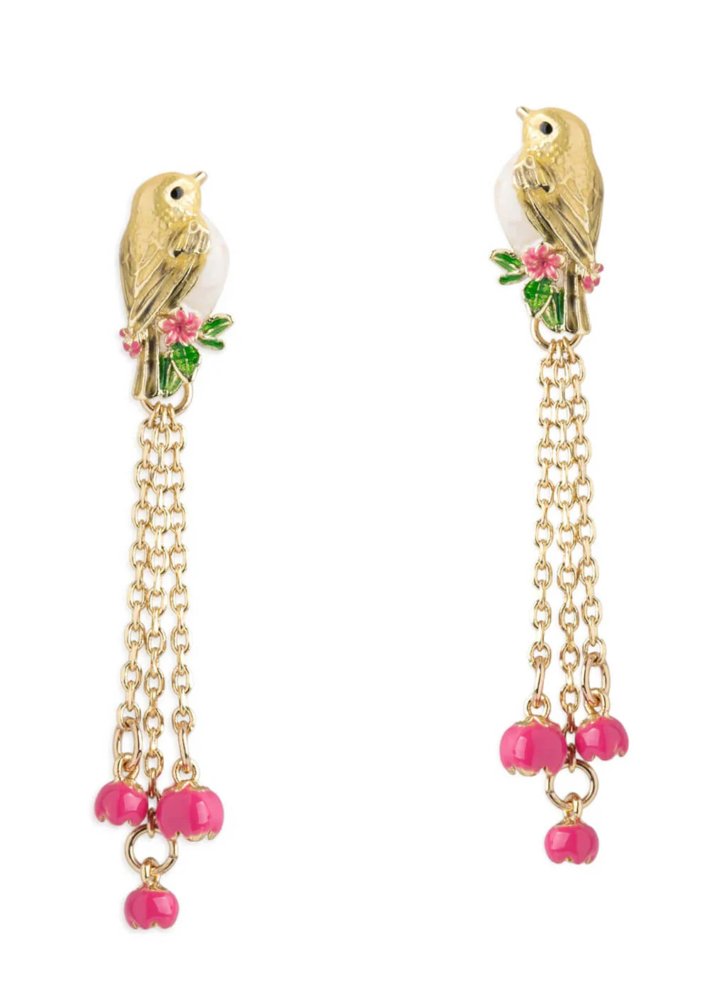Le goldcrest est le plus petit oiseau d’Europe, mais ces boucles d’oreilles ont beaucoup d’allure. Les chaînettes ornées de petites fleurs se balancent gaiement sous les oreilles. Ces pièces remarquables associent émail peint à la main et détails dorés, et elles scintillent sous tous les angles. Cadeau ou plaisir personnel : pour qui commandez-vous cette pièce phare?