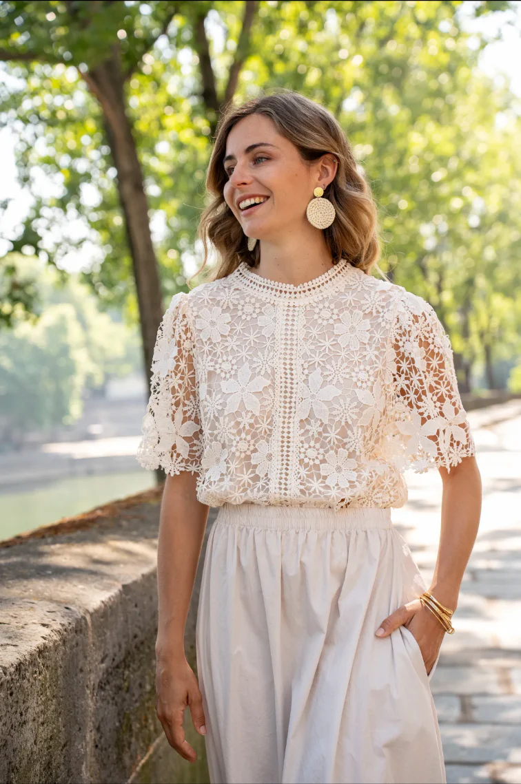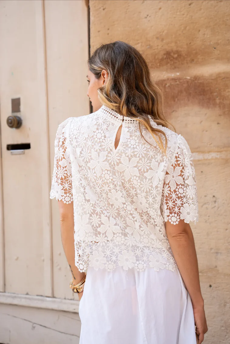 Raffinée et féminine, cette blouse en dentelle fleurie est un indispensable du dressing estival.