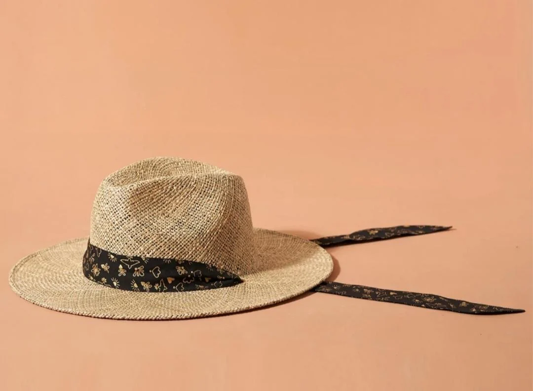 Chapeau de paille SOMBRERO Foulard Noir et Doré MARADJI Reste taille L !