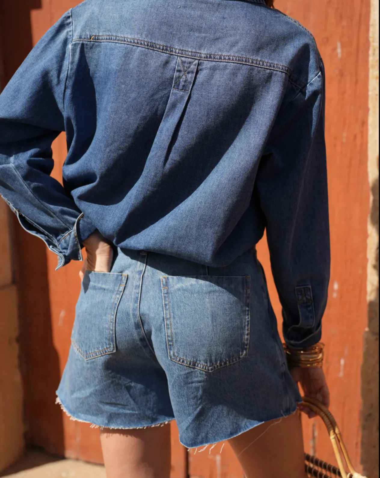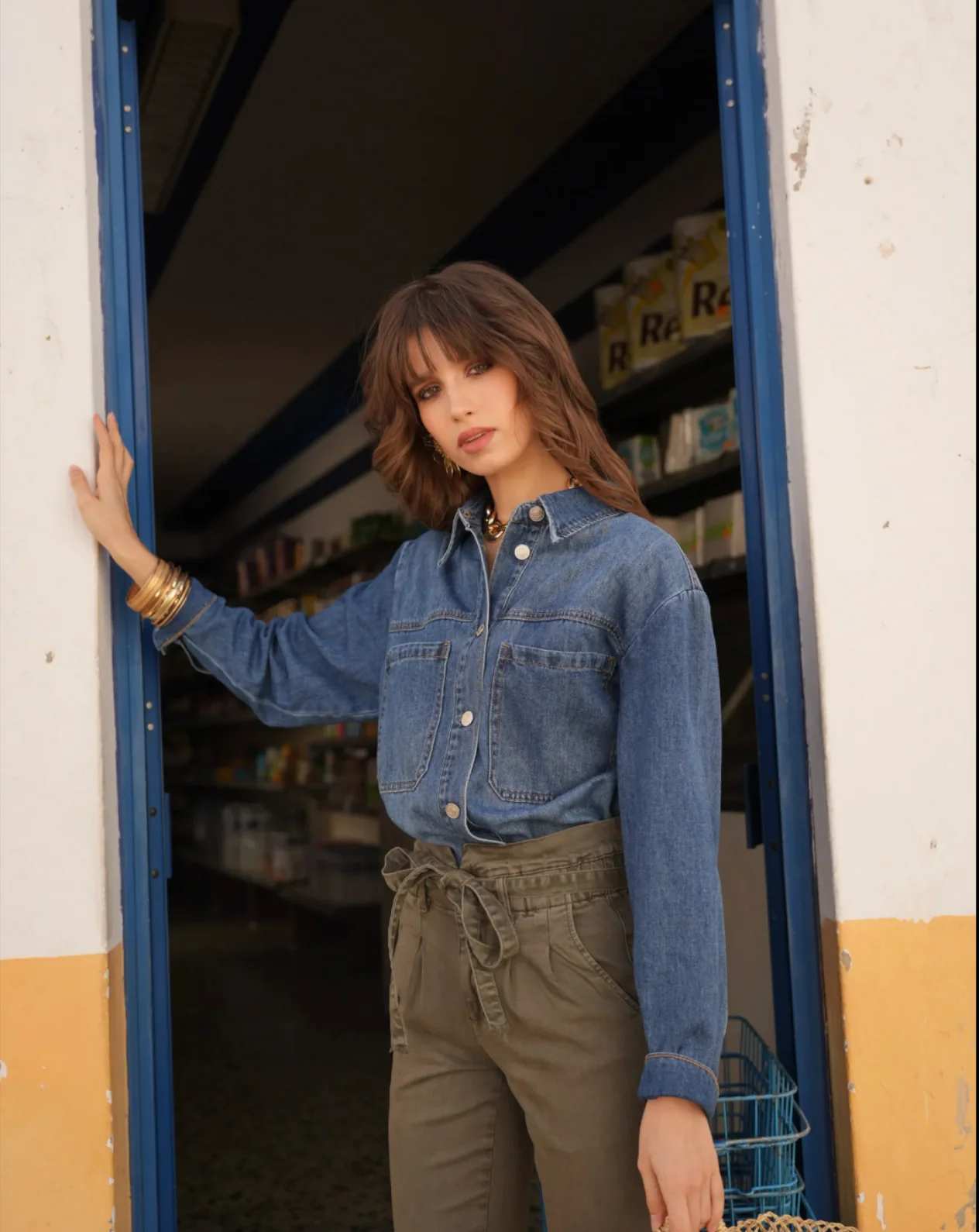Chemise en jean classique à la coupe droite, un essentiel du vestiaire décontracté et casual chic.