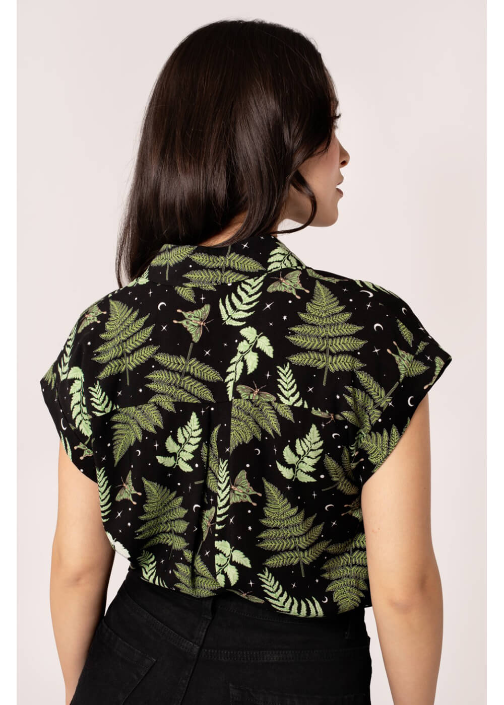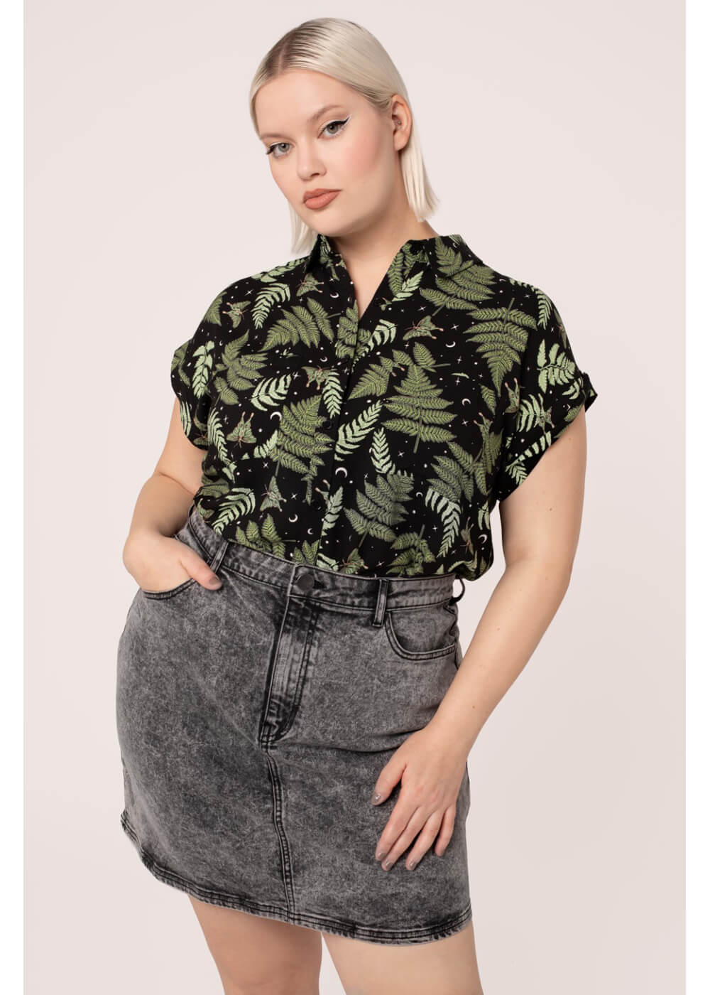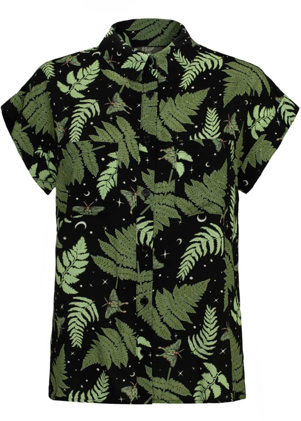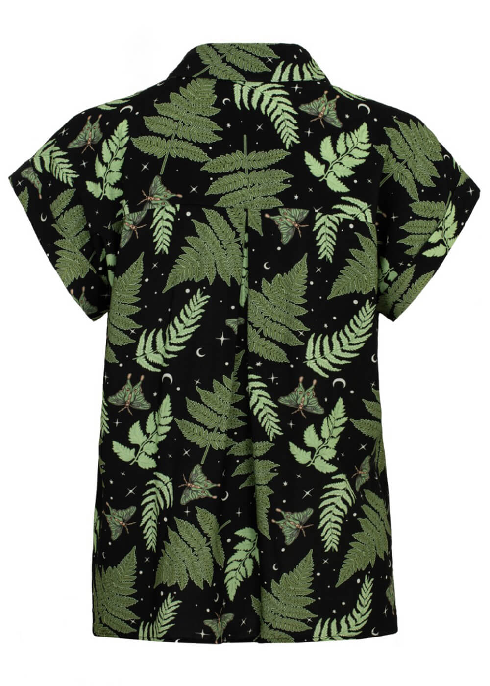 C’est un plaisir à porter grâce à sa viscose légère et sa fente avant. Rien ne respire plus le printemps et l’été que la nouvelle croissance : heureusement, Gaia est ornée de feuilles, lunes, étoiles et papillons de nuit, sur un fond noir nuit. D’une beauté magique !