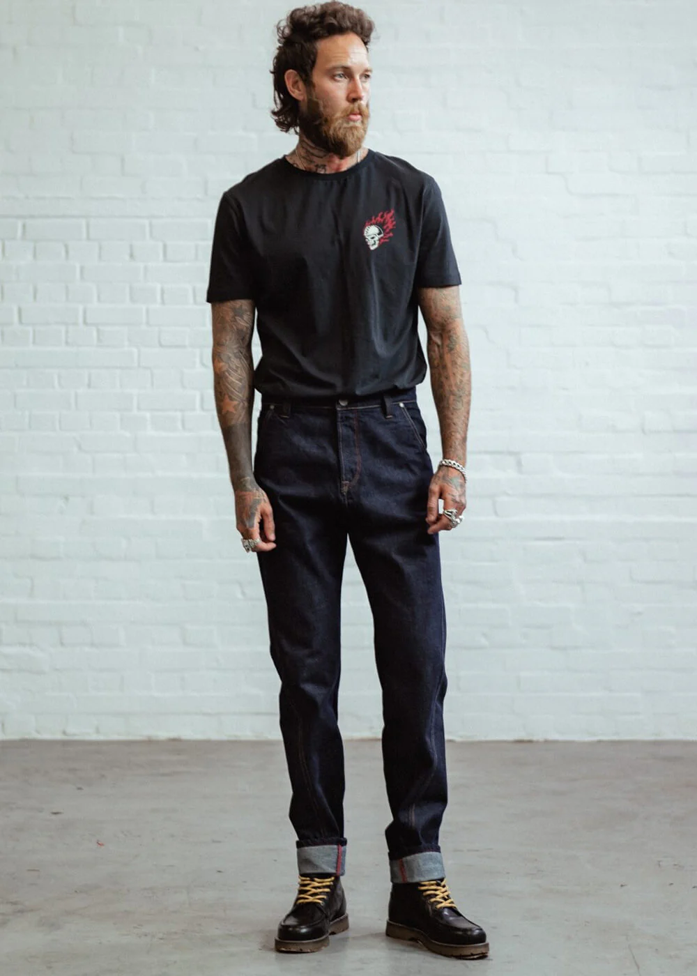 Un élément essentiel de ta garde-robe Rock ‘n Roll : des jeans navy !