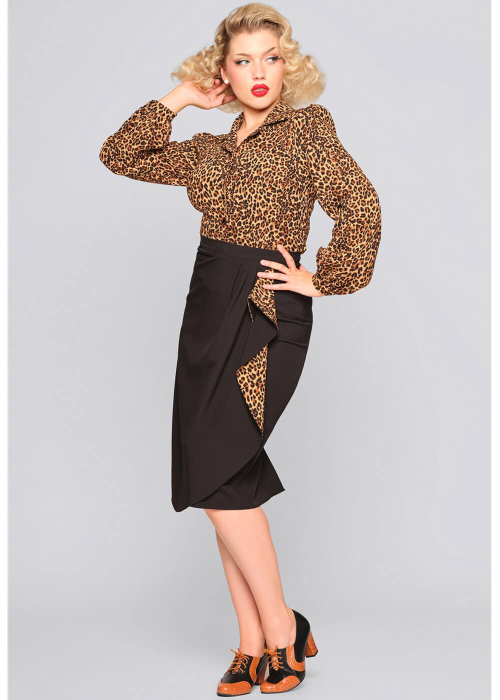 Cette beauté se porte à la taille et descend droit jusqu’au-dessus du genou. Cette pièce maîtresse est impossible à manquer : un détail en cascade avec un motif léopard ! À quel point vous pouvez rendre une jupe Vavavoom ? Anita est la réponse 🙂