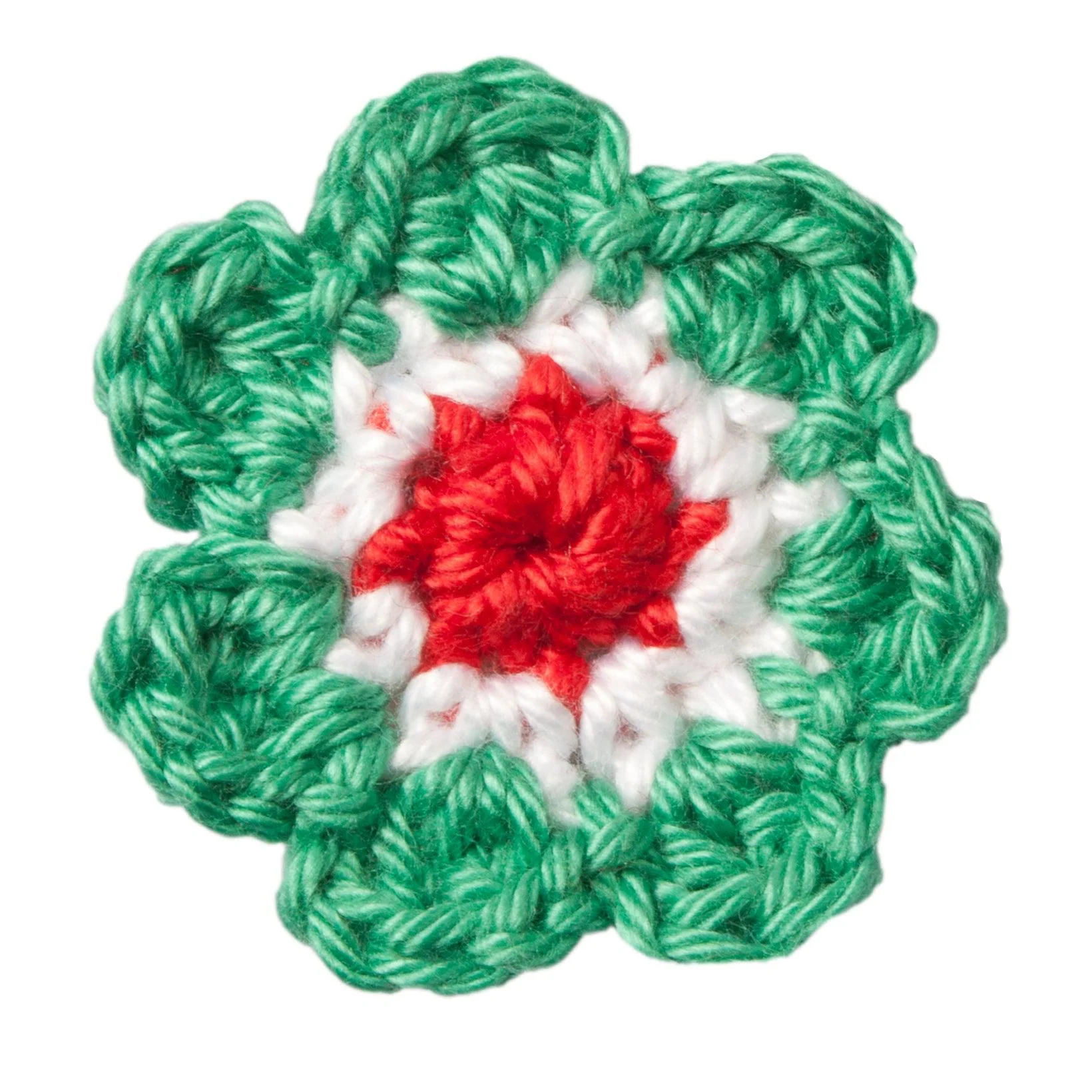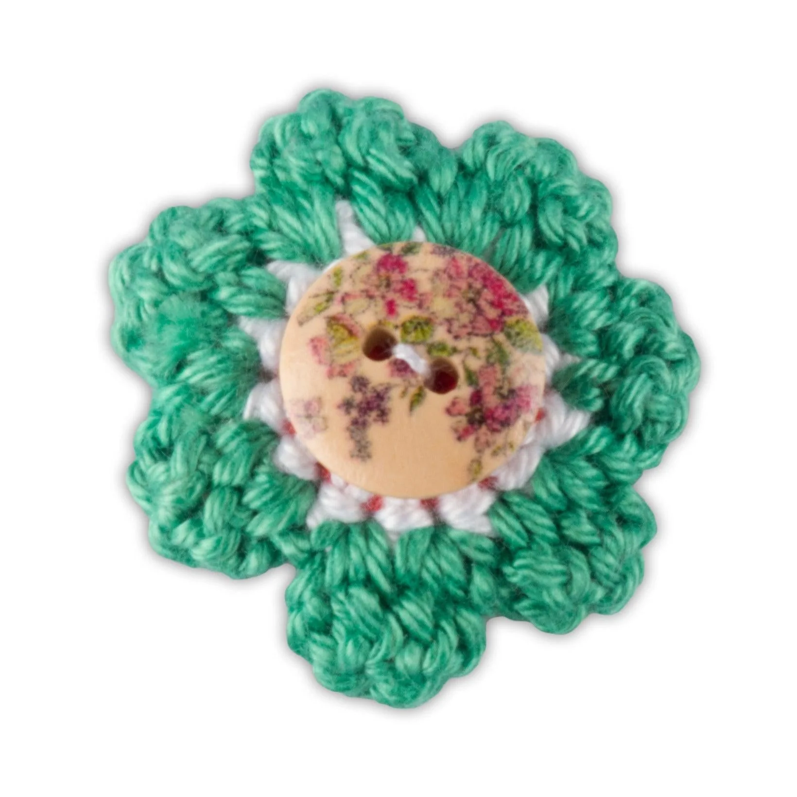 - Die Blumen werden von Hand mit Baumwollgarn gehäkelt.