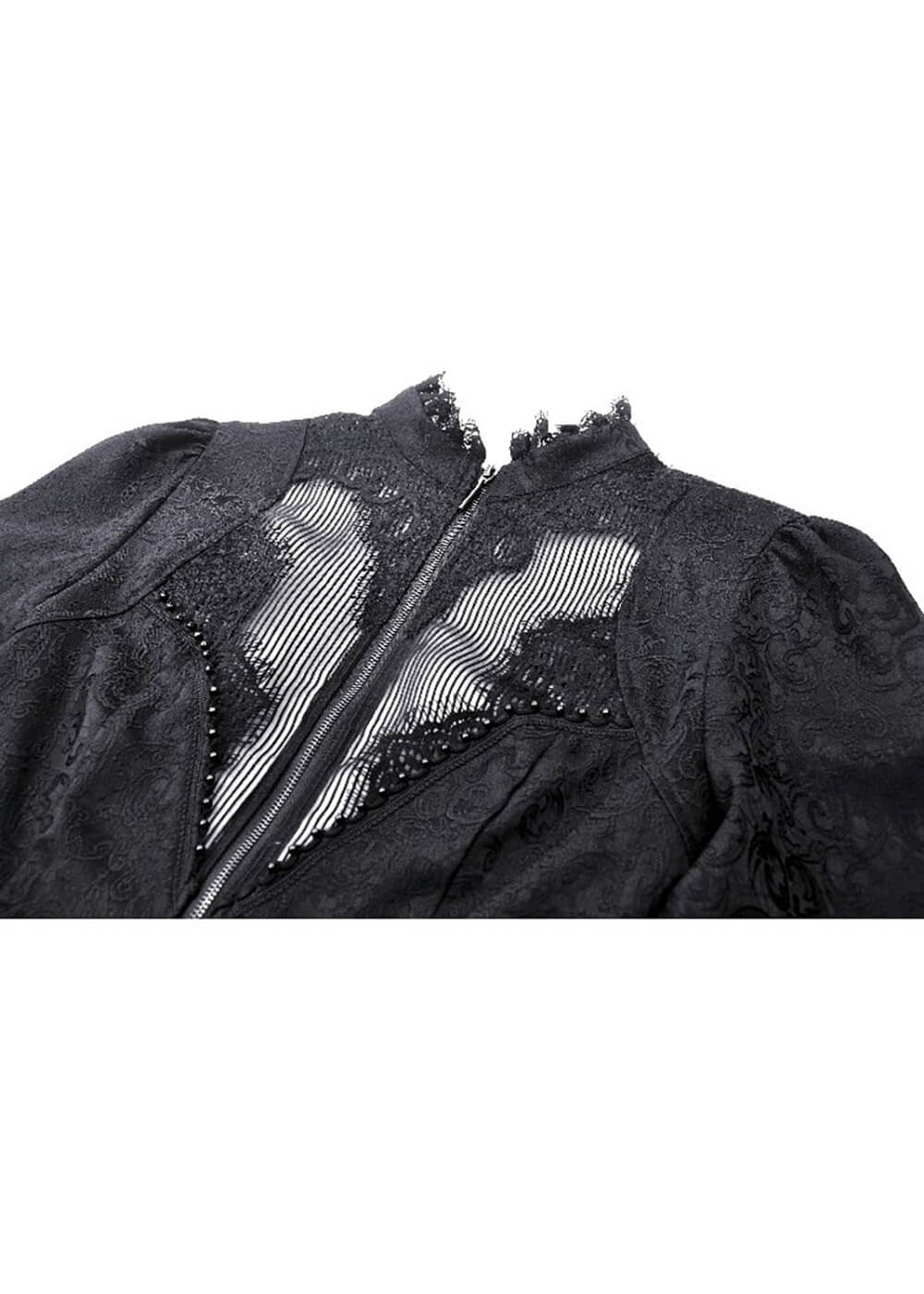 Haunted Love n’est pas un simple manteau, mais une déclaration de votre passion pour le drame victorien! Ce chef-d’œuvre attirera tous les regards grâce à son design exceptionnel; un corsage ajusté avec de magnifiques manches bishop, accompagné d’une demi-jupe et de manches en dentelle noire sensuelle. Êtes-vous déjà sous le charme?