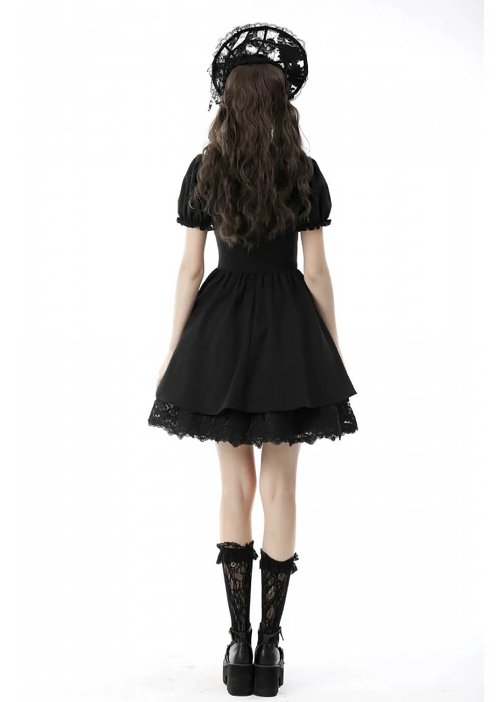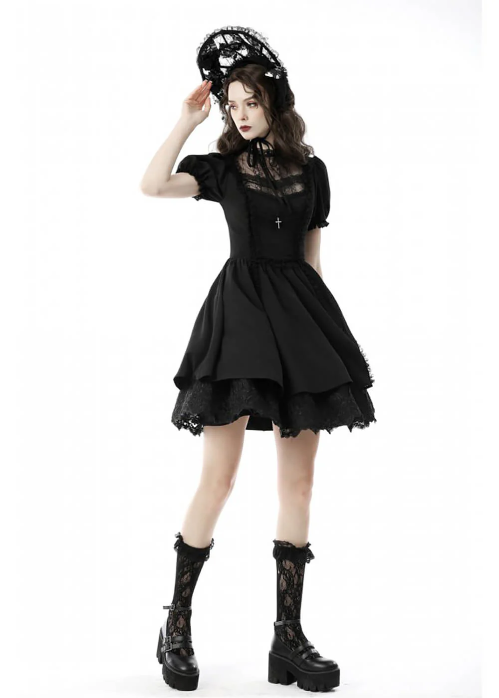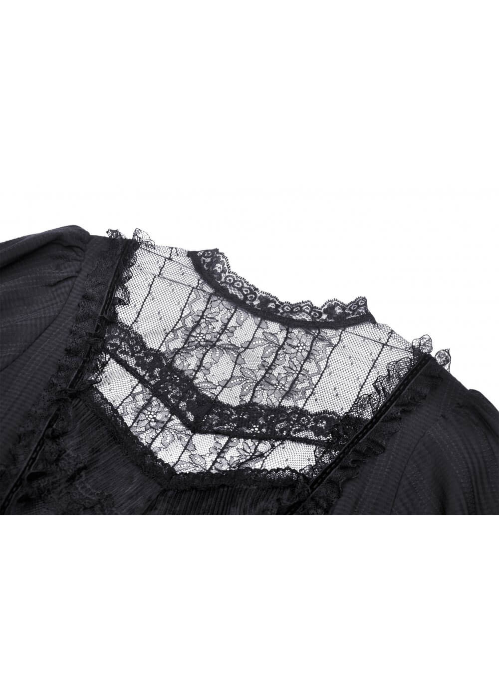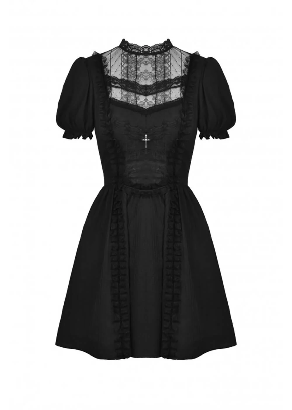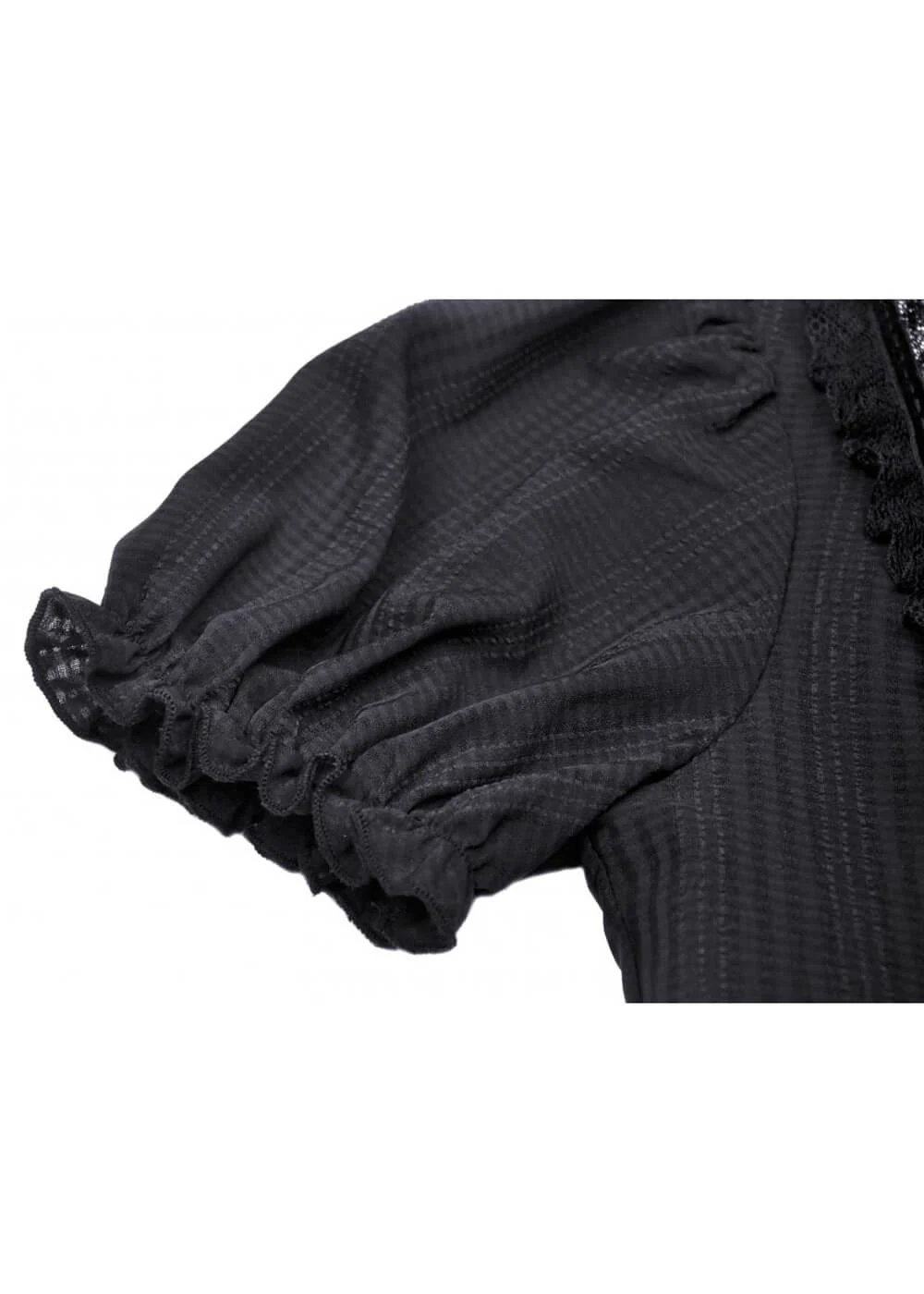 Elle se distingue par sa prestance et sa délicatesse grâce à ses détails en dentelle qui parcourent le corsage. Le tissu splendide a une texture fine sans élasticité, et le petit croix complète le tableau Haunted. Creepy-Cute n’a jamais été aussi élégant !