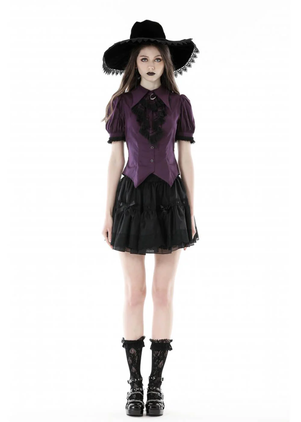 Vous n’avez jamais vu une chemise avec un design aussi élégant ! Elle s’adapte parfaitement et grâce à son ourlet pointu, elle semble taillée sur mesure. Cependant, elle reste d’une grande élégance avec son col, sa bordure en dentelle et ses délicates manches bouffantes. Sa couleur et son pendentif lune la complètent à la perfection.