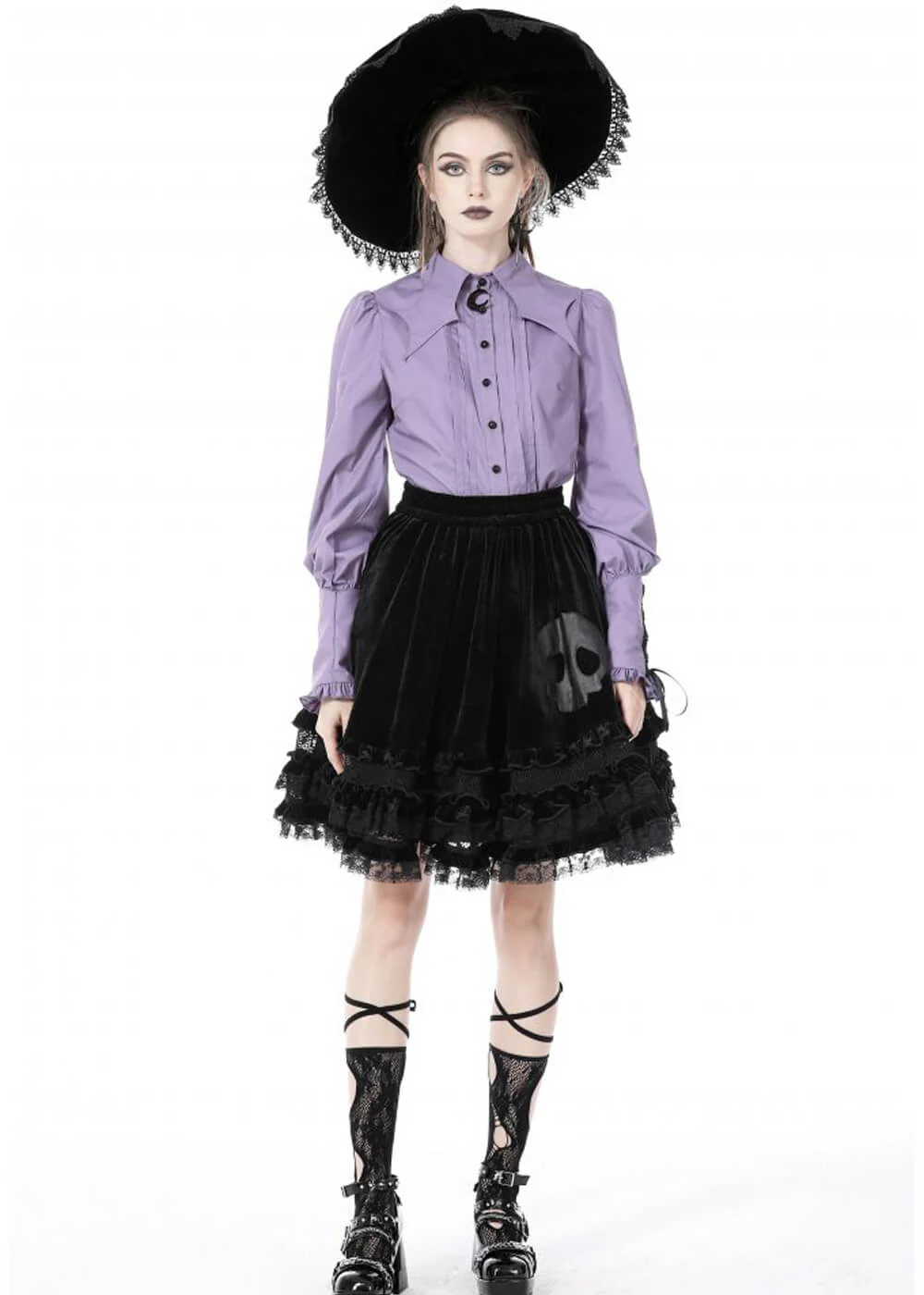 Même les dames les plus mystérieusement vêtues souhaitent avoir l’air élégantes, et se limiter au noir n’est pas amusant. Cela vous rappelle quelque chose ? Dans ce cas, la blouse Witch et vous êtes un duo parfait ! Sa couleur lilas et son col en forme d’ailes sont tout sauf subtils et prêts à envoûter votre cœur. Elle rentre chez vous aujourd’hui !