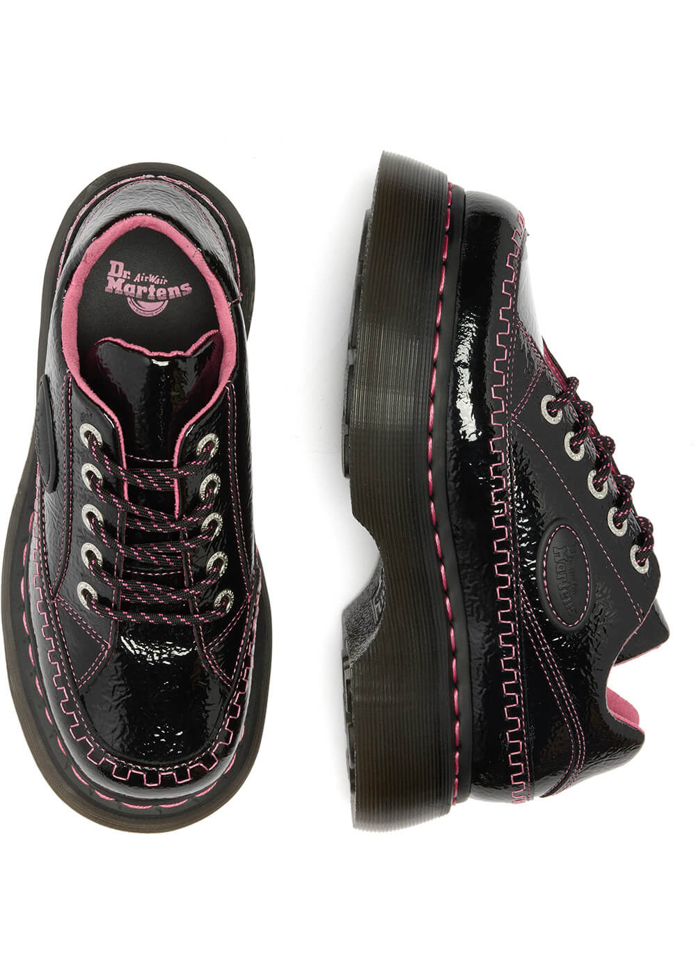 La Buzz vous replonge dans l’ambiance des années 90 avec son cuir verni brillant au look distressed et sa semelle plateforme imposante. Avec son style sneaker culte et ses surpiqûres roses, elle ne passe pas inaperçue, et l’ADN Dr. Martens est omniprésent — du cuir véritable de haute qualité à la bride de talon. Sous un pantalon ou une robe, en festival ou au bureau : vous et vos Docs pouvez tout affronter !