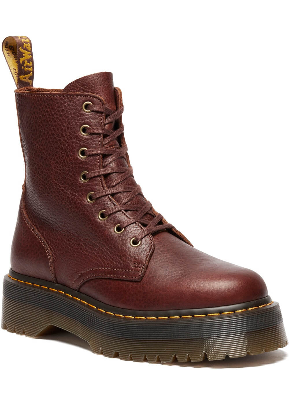 Élevées et sèches, et parfaites pour l’automne! Jadon continue de prendre de la hauteur avec ses 8 œillets et sa semelle plate-forme chunky… L’ADN de Dr. Martens est indéniable. Sous un pantalon ou une robe, pour un festival ou au bureau : toi et tes Docs pouvez conquérir le monde!
