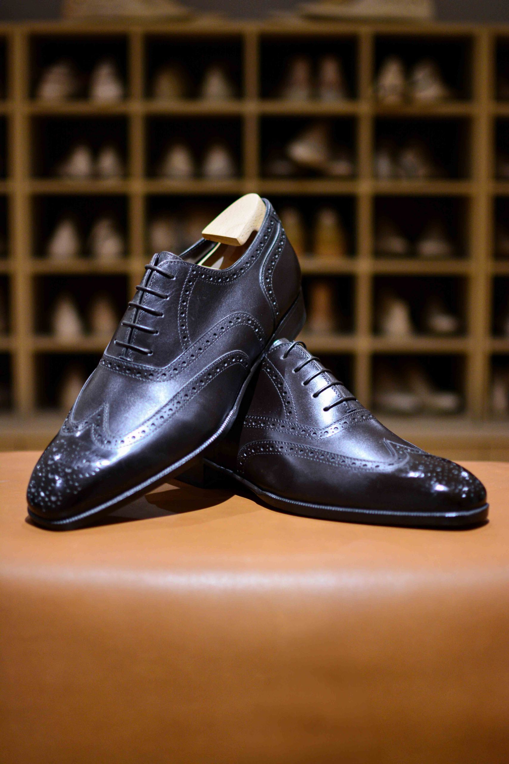 L’Edward est un richelieu à cinq oeillets et à bout golf fleuri. C’est un grand classique de l’élégance masculine. Le grand travail de perforation souligne la beauté de sa forme, typique du style Aubercy.