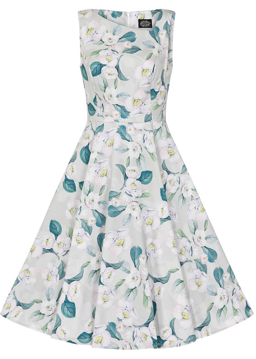 Hearts & Roses Rey Floral Robe Swing des Années 50 Grise