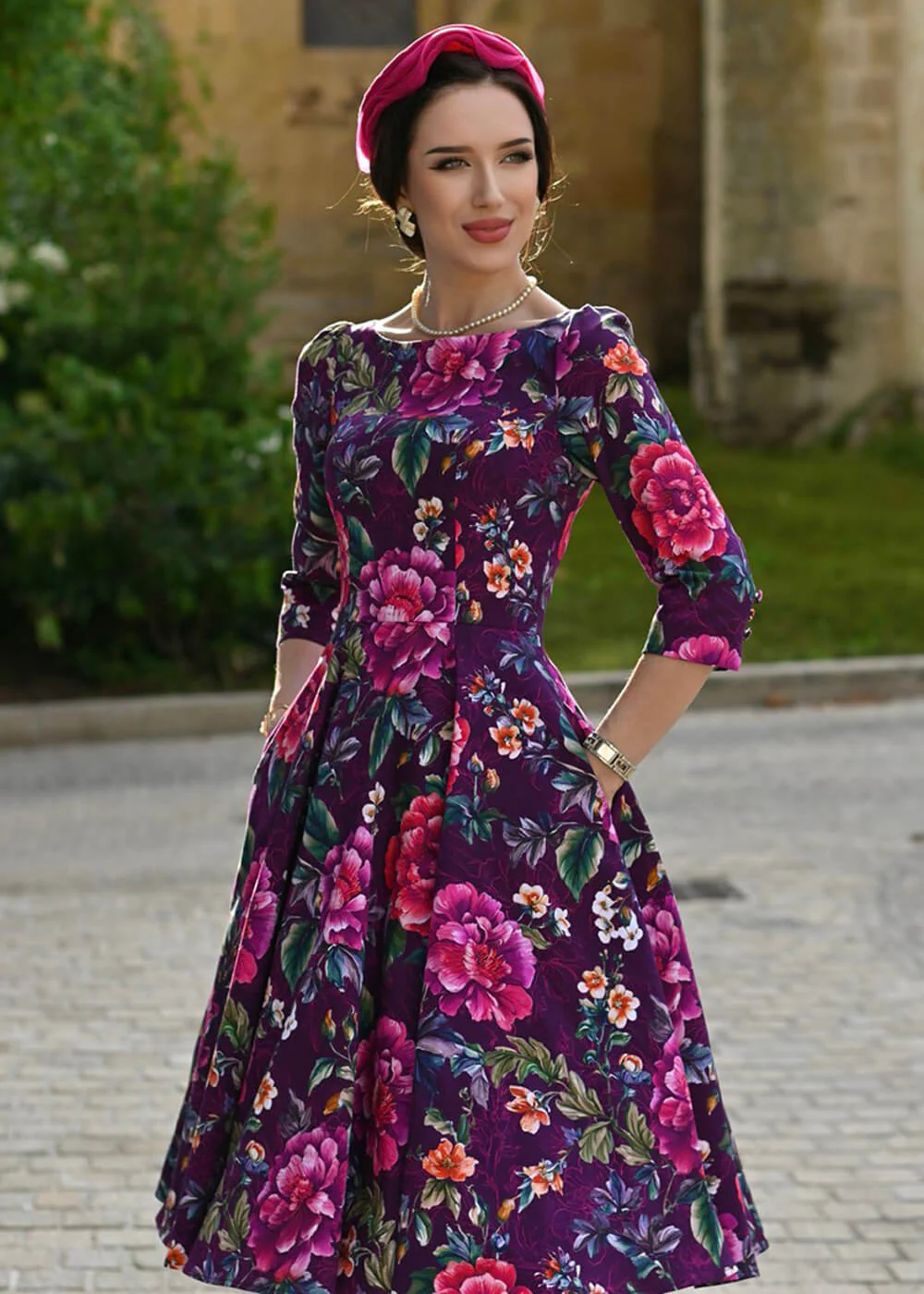 Un romantique bouquet de fleurs sur un fond violet, la touche féminine idéale qui vous fera briller partout : lors d’un goûter, lors d’un jour spécial ou tout simplement tous les jours qui se terminent par -jour ! Bonne nouvelle : avec son mélange de coton légèrement extensible, elle est aussi agréable à porter qu’élégante… Hearts & Roses est vintage inspiré au meilleur ♥