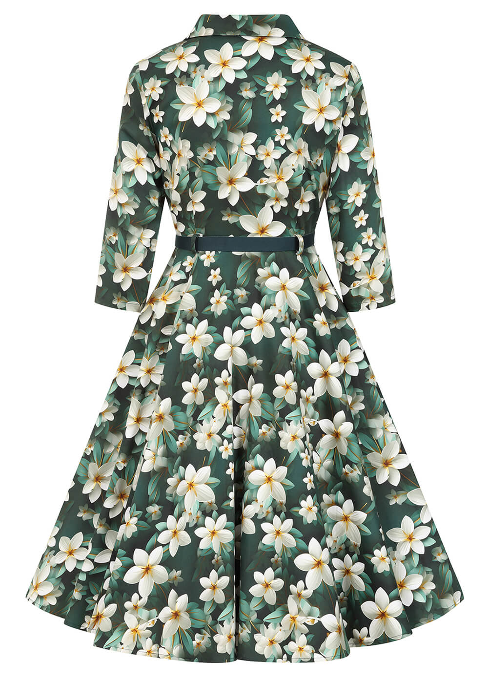 Skye chasse la morosité automnale de votre dressing.rnrn- Robe fleurie vintage, parfaite pour les fêtes et le quotidienrn- Confectionnée en mélange coton avec un léger stretch pour le confortrn- Fermeture à boutons sur le devantrn- Coutures princesse pour une coupe élégantern- Passants de ceinture et ceinture amoviblern- Encolure en V et col classiquern- Manches 3/4rn- Poches pratiques !rn- Jupe évasée à partir de la couture de taille pour un bel effet swingrn- Sur une personne de 1,70 m, elle arrive environ au genourn- Le mannequin mesure 1,65 m et porte du XSrn- Se porte parfaitement avec un jupon (petticoat)rn- Composition : 97% coton – 3% élasthannern- Lavable en machine à 30 °C, ne pas utiliser de sèche-linge