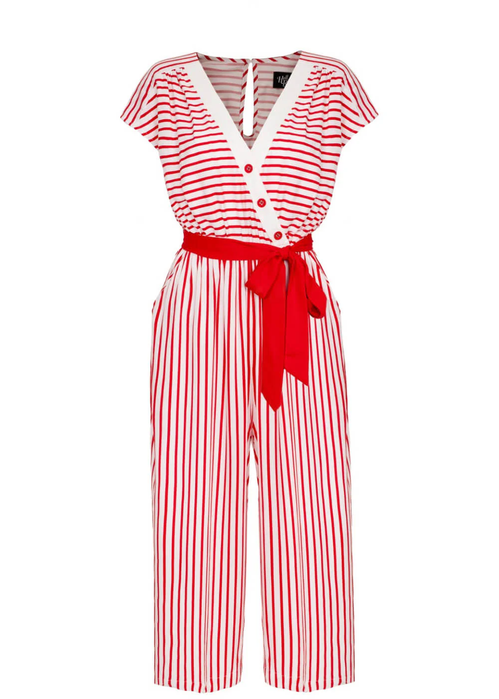 Hell Bunny Ahoy Stripe 40’s Jumpsuit Rouge