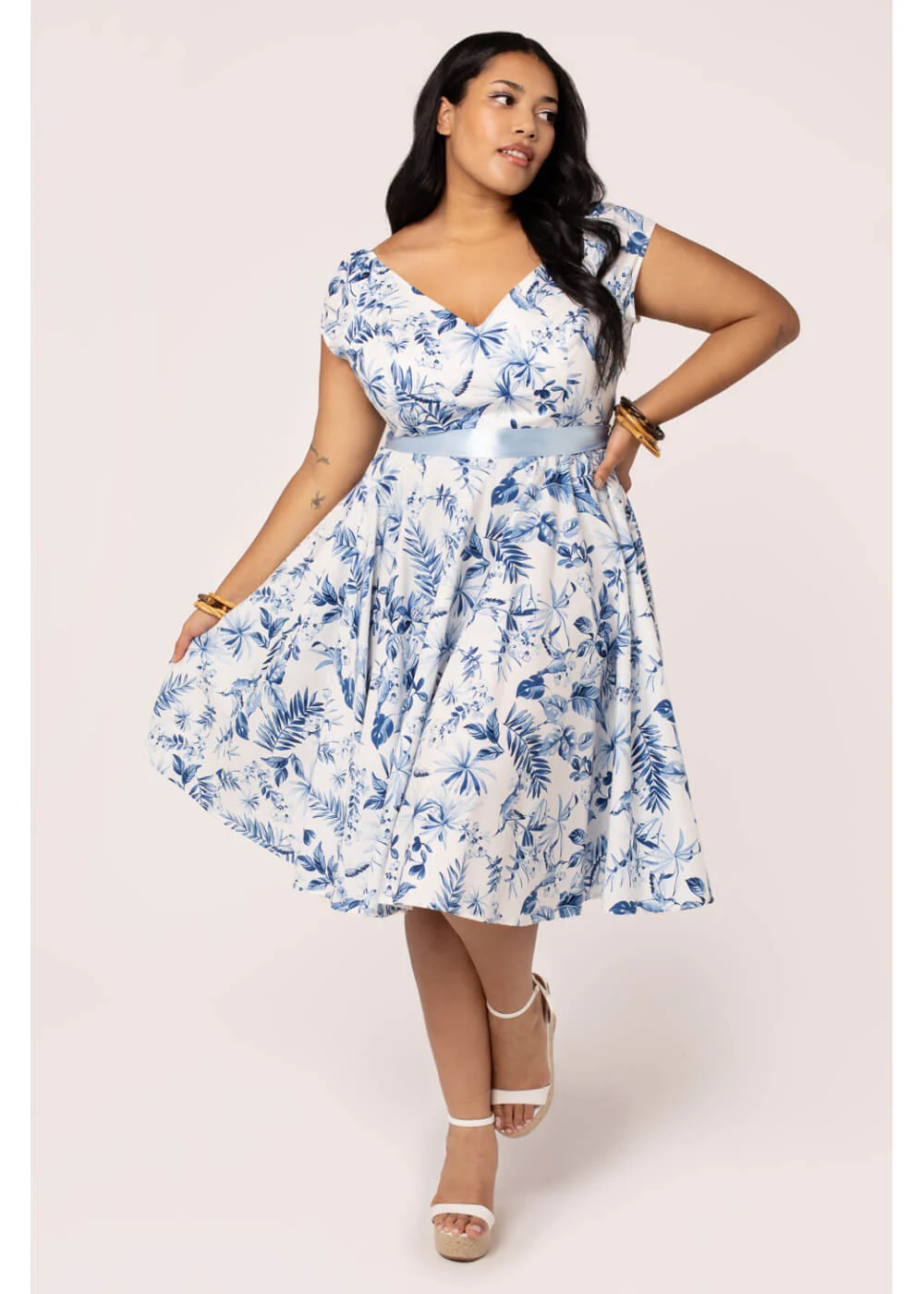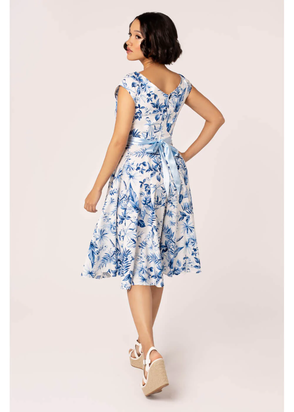 Delfts Blauw, Chinees Porselein… wat zie jij in Amazilia? Jouw nieuwste schatje natuurlijk! Deze swingjurk is voorzien van een prachtige blauwe print vol planten en vogels op een witte achtergrond en zit door haar prachtige katoen-mix als gegoten… Op de thee, naar kantoor of op vakantie: Amazillia is jouw nieuwe favoriet!