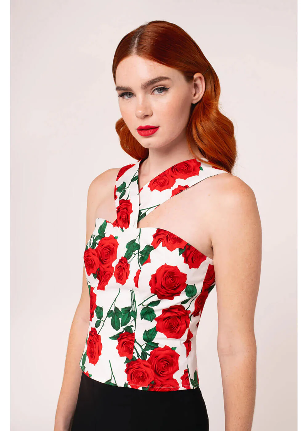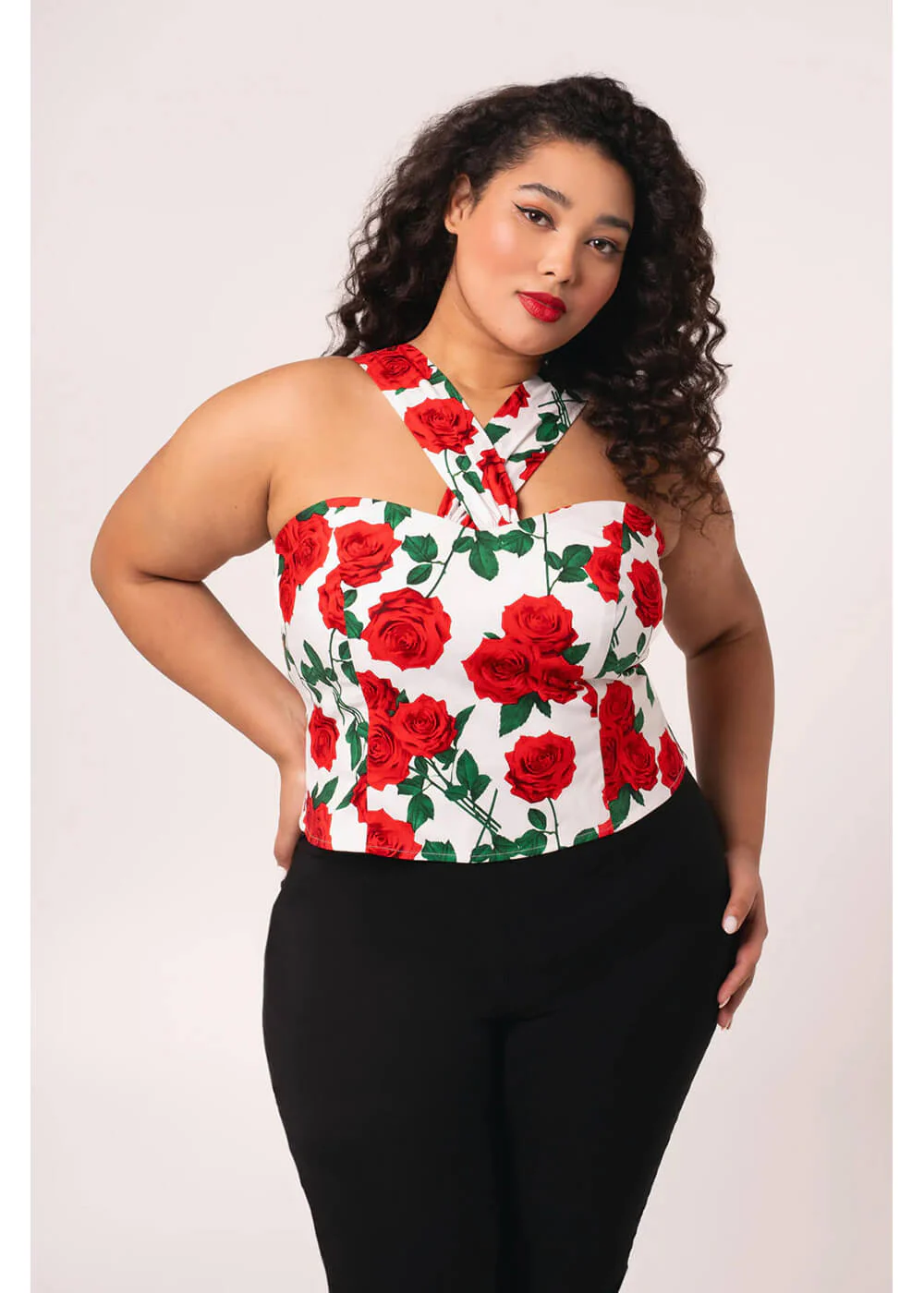 Adoptez la dolce vita avec ce top 50’s irrésistible, orné de roses rouges sur un agréable mélange coton noir. Les bretelles croisées à l’avant laissent entrer le soleil et créent le look 50’s parfait. Vous n’aurez qu’une envie : danser la vie douce — et bonne nouvelle : personne ne vous arrête ♥
