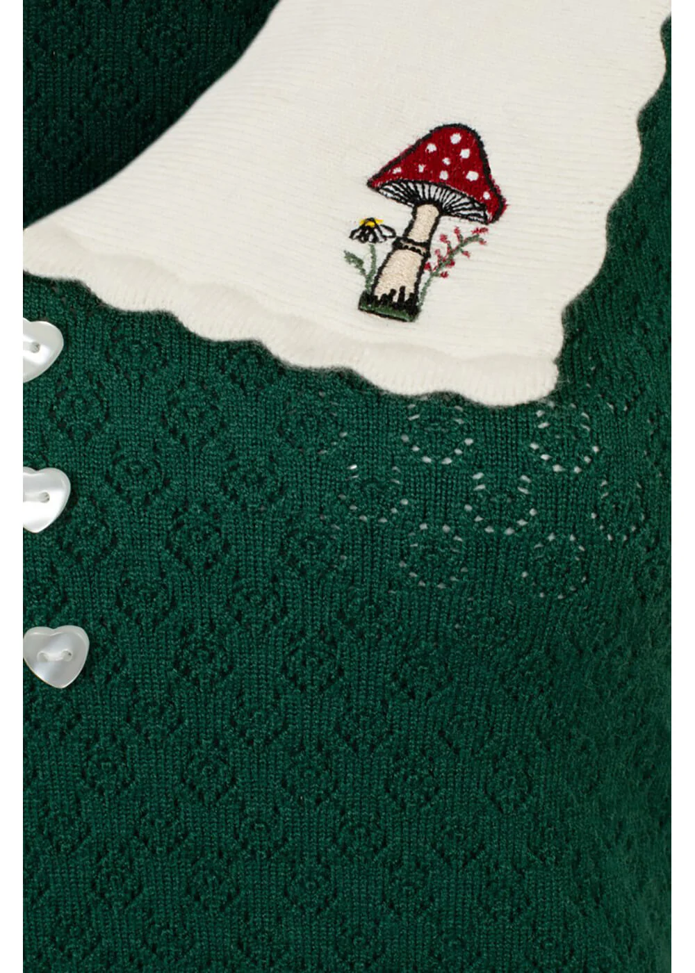 – Décolleté en V avec col et champignons brodés