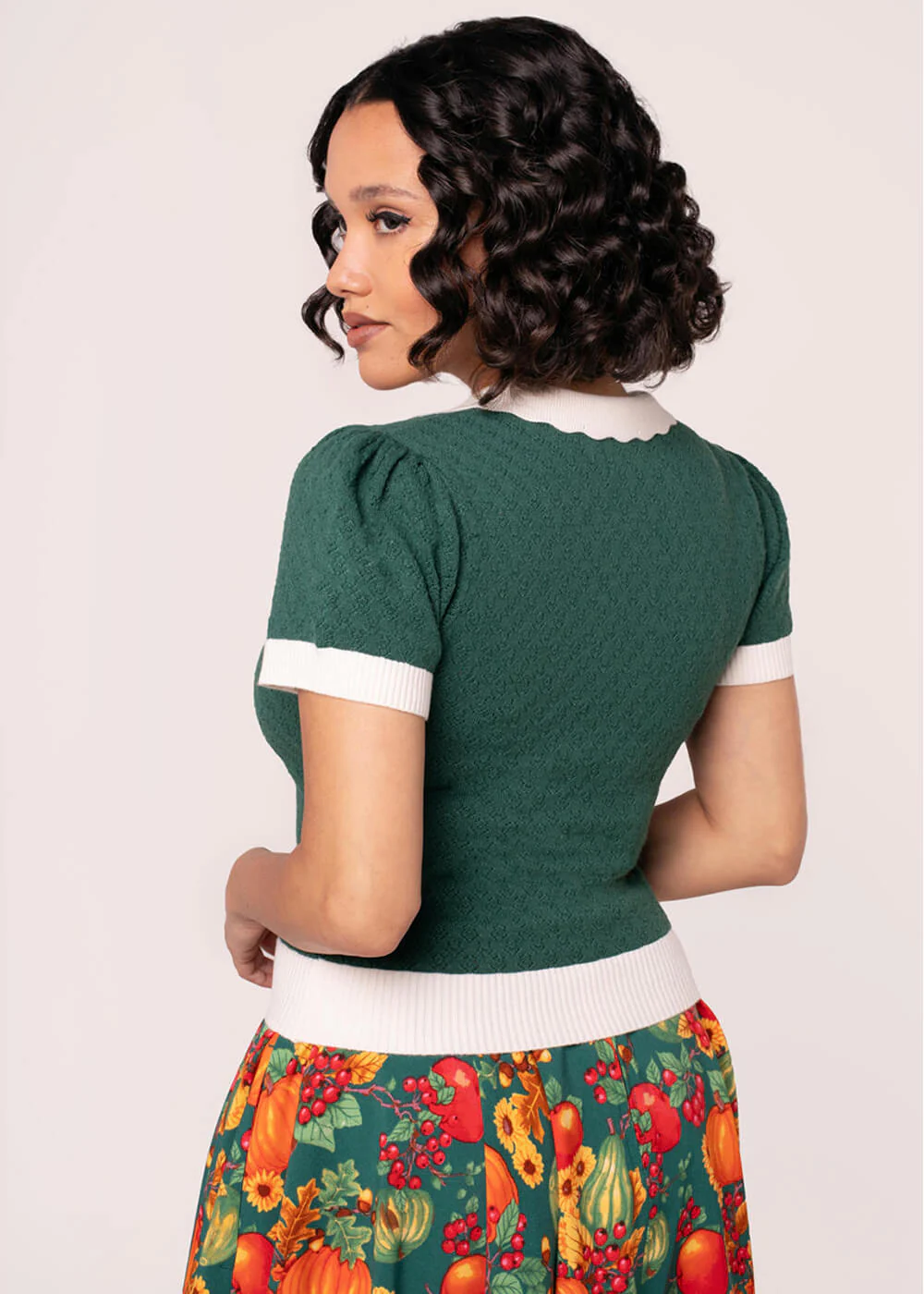 Quelle est notre partie préférée de l’automne ? Tous ces jolis pulls ! Comme la Genevieve, avec des champignons brodés avec espièglerie sur le col ivoire et sa teinte verte parfaite pour l’automne. Portez-la avec toutes vos jupes et pantalons amples préférés pour le look automnal parfait, et même plus ♥