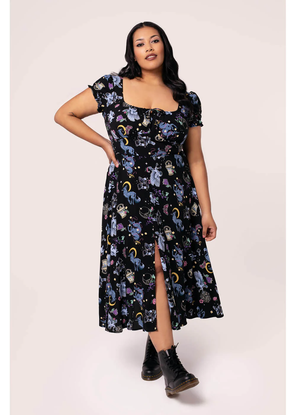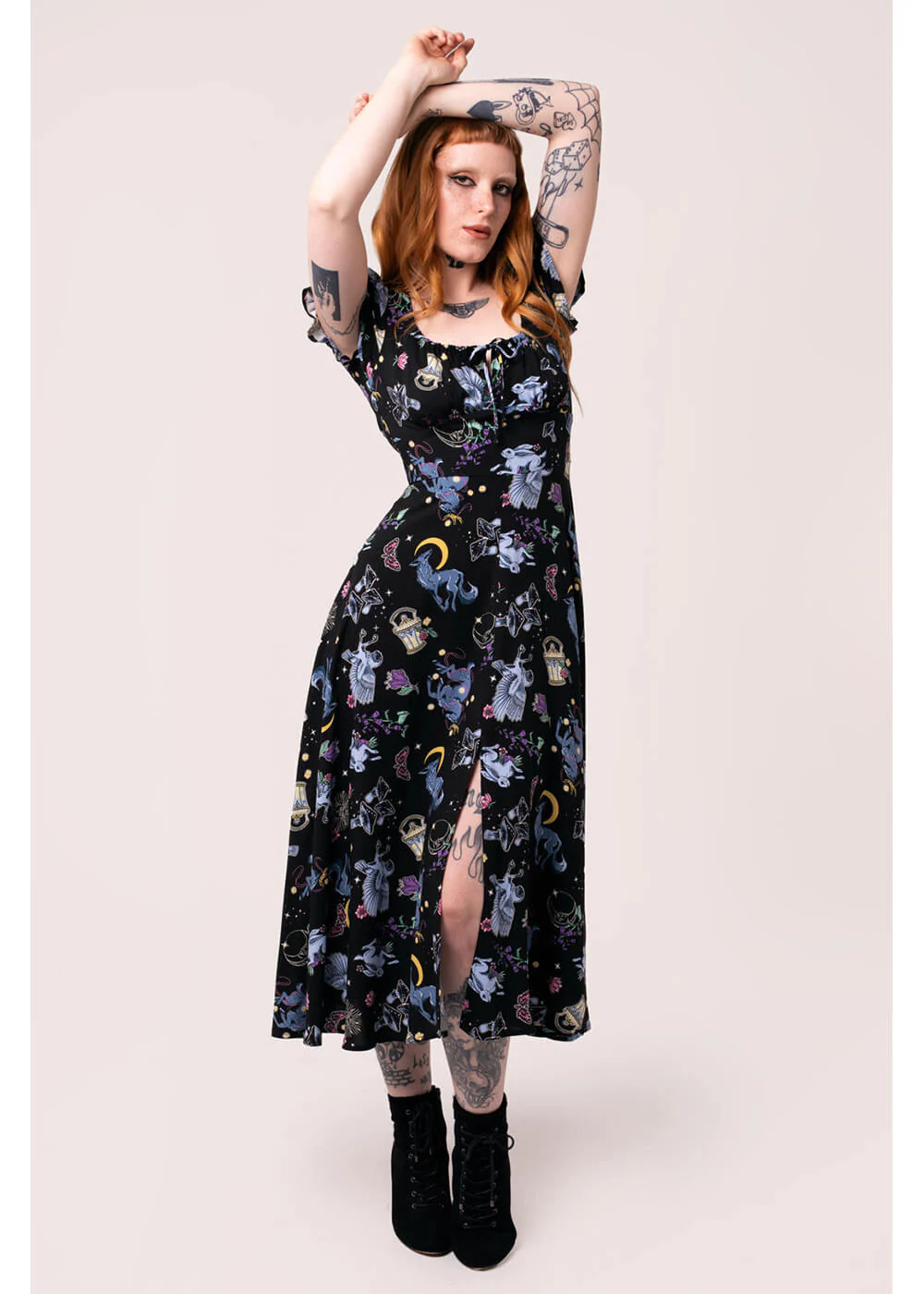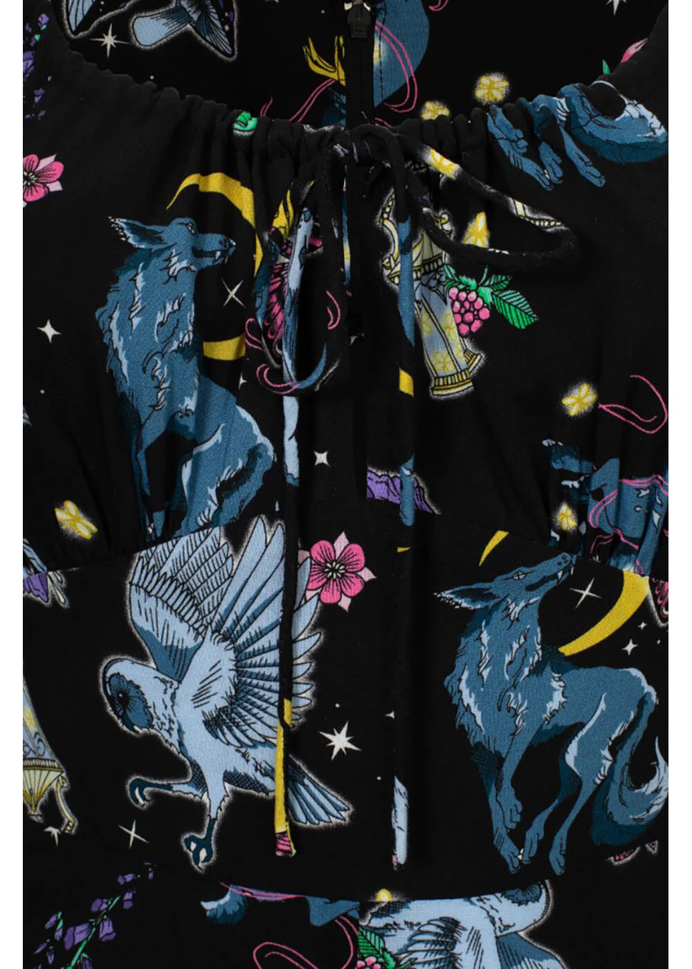 Wat je in het holst van de nacht niet allemaal tegen kan komen: prachtige manen, paddestoelen, wolven… Je vind al dat magische nachleven op luchtig viscose, dat elke stap met je meedanst. Tijd voor een dark girl summer!