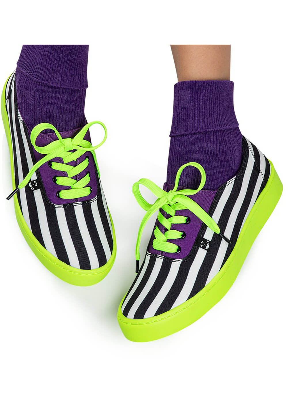 Une des leçons offertes par Beetlejuice est que chaque moment mérite une tenue parfaite, même une fois disparu ! En ayant bien retenu cette maxime, vous optez pour ces chaussures amusantes qui reflètent l’allure singulière de Beetlejuice, avec des insectes en prime !
