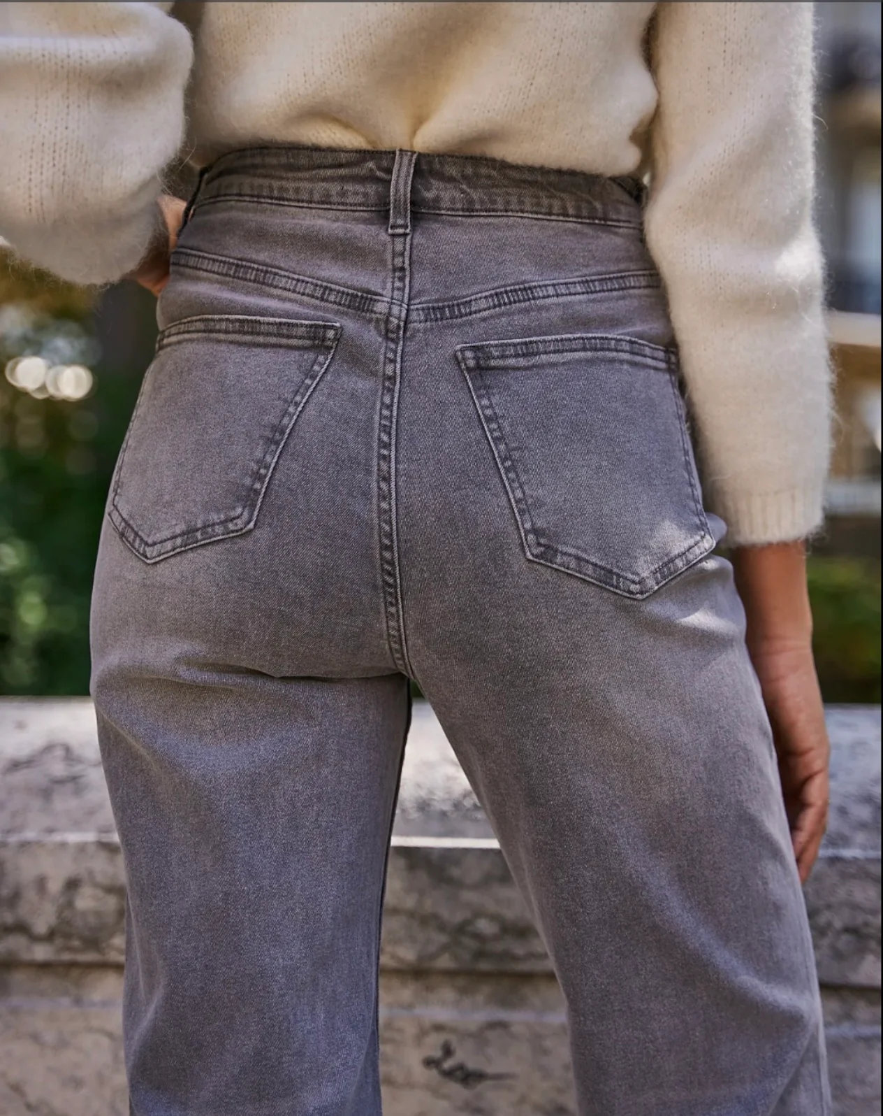 Coupe : Wide leg, ample et moderne Taille : Haute avec passants pour ceinture Fermeture : Zip sous patte + bouton métallique Poches : Deux poches en biais à l’avant + deux poches plaquées au dos avec surpiqûres Longueur : Coupe longue, légèrement couvrante