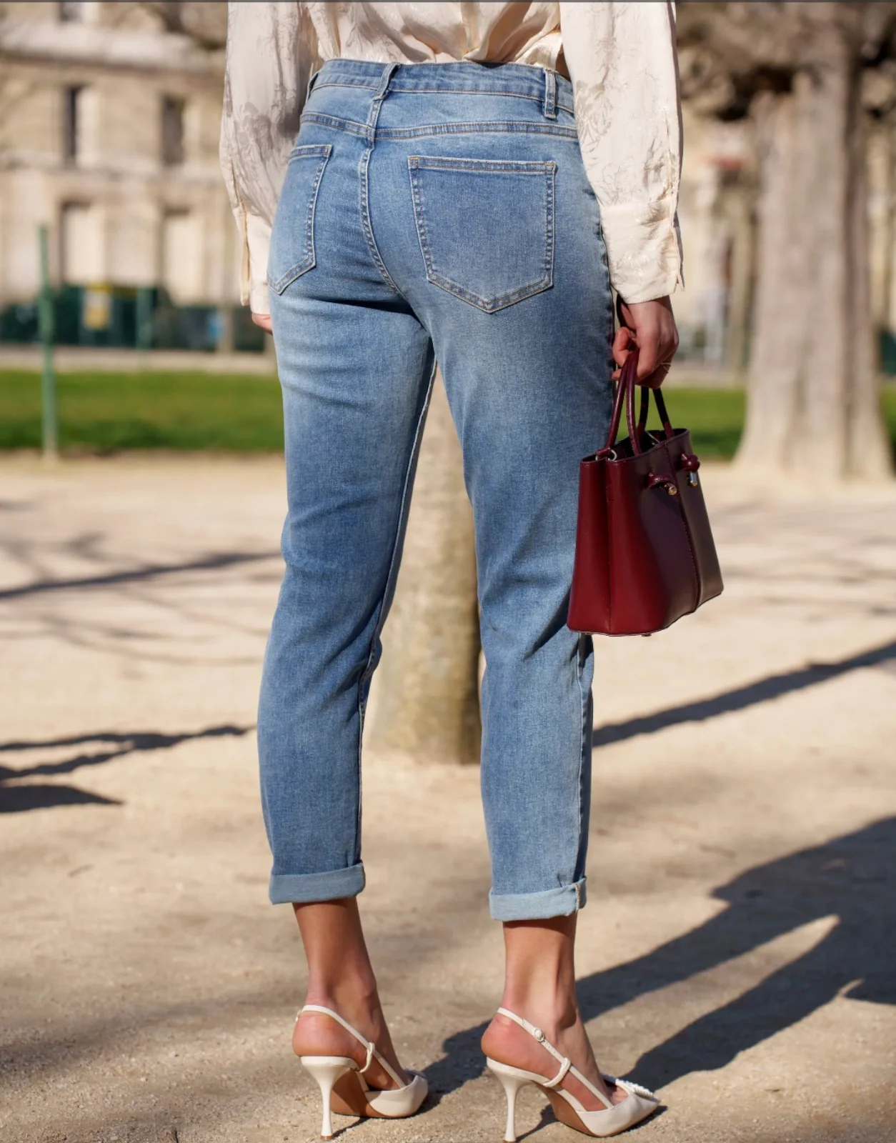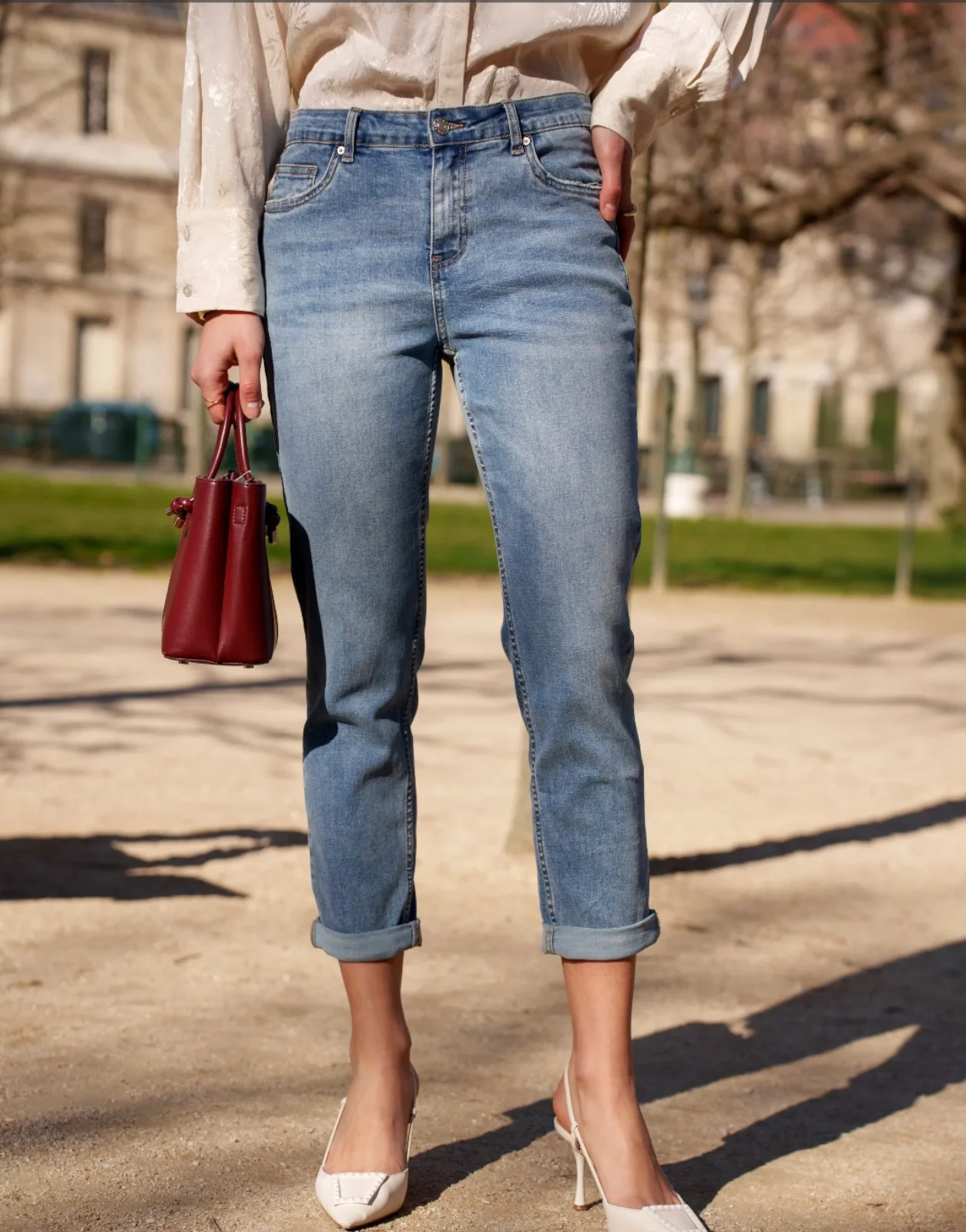 Un essentiel du vestiaire casual chic, ce jean à la coupe relax conjugue confort et style. Sa taille haute structure la silhouette tandis que sa ligne légèrement fuselée affine la jambe. Parfait pour un look effortless en journée comme en soirée.