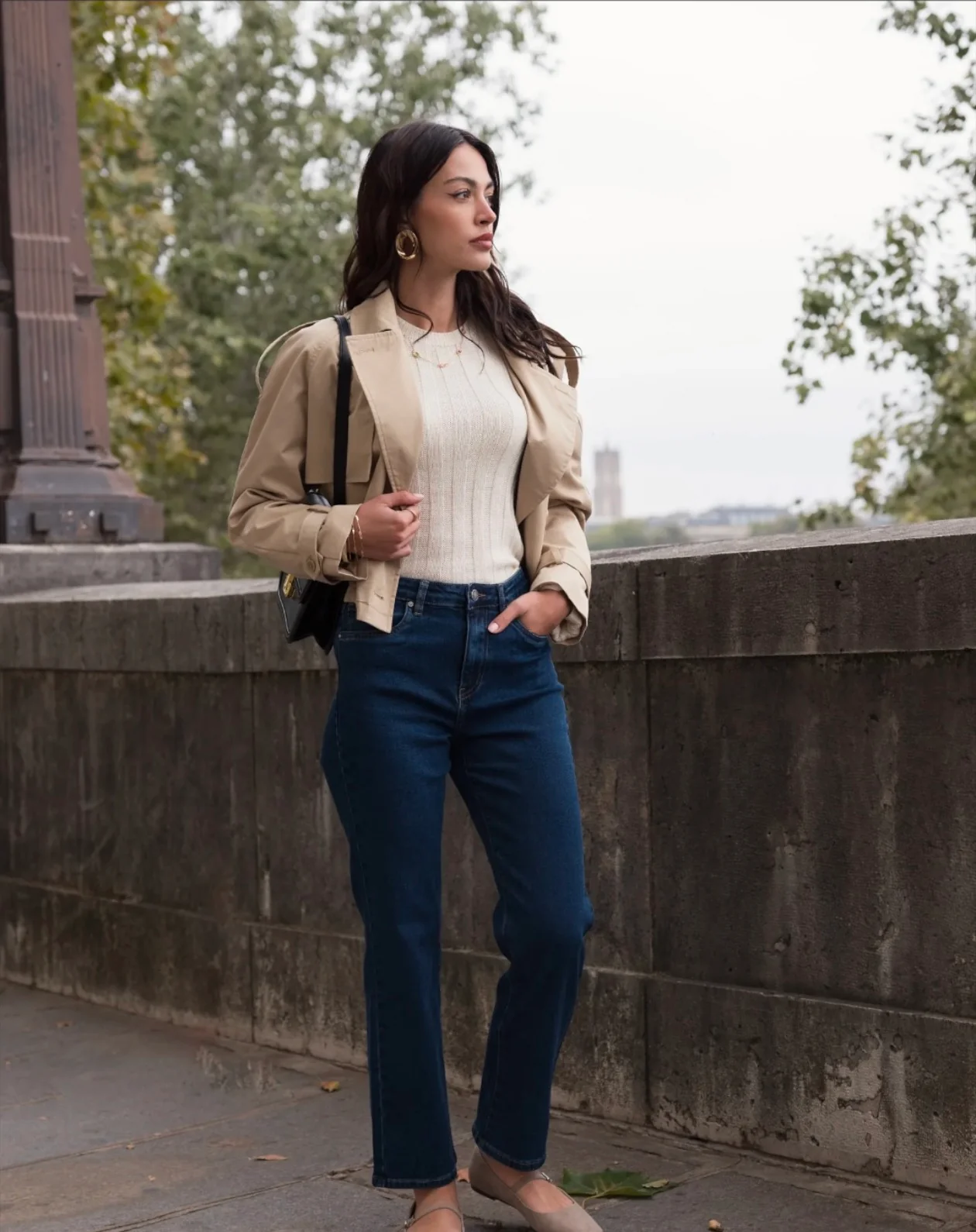 Denim : Toile souple et légèrement stretch, confortable toute la journée