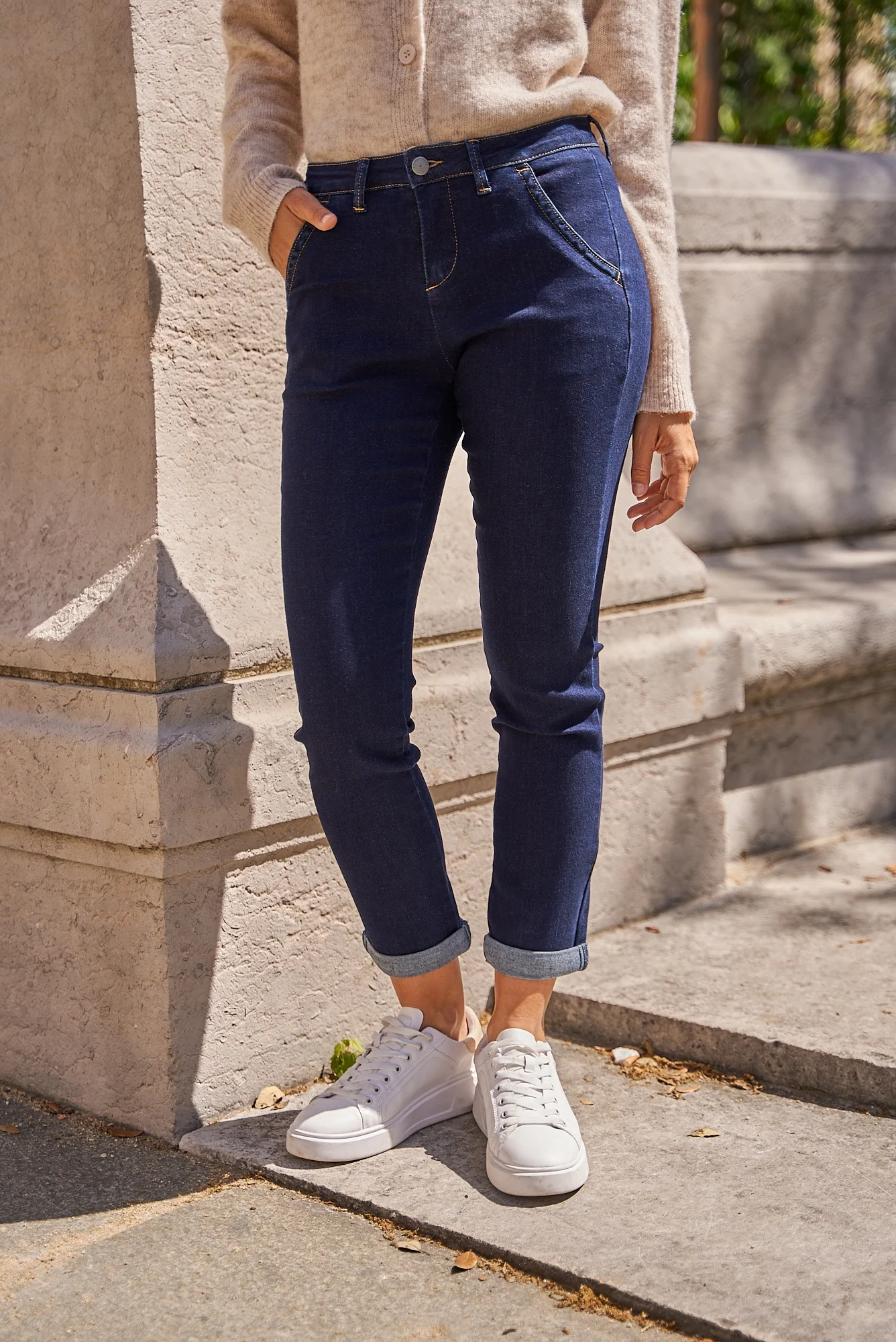 Coupe : Slim chino, près du corps sans être moulant
