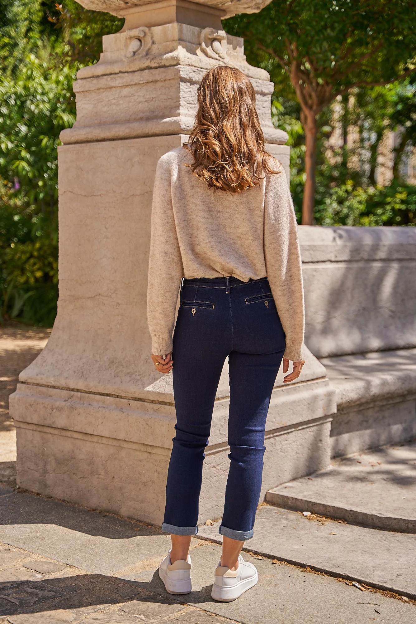 Poches : 2 poches avant + 2 poches dos passepoilées à bouton