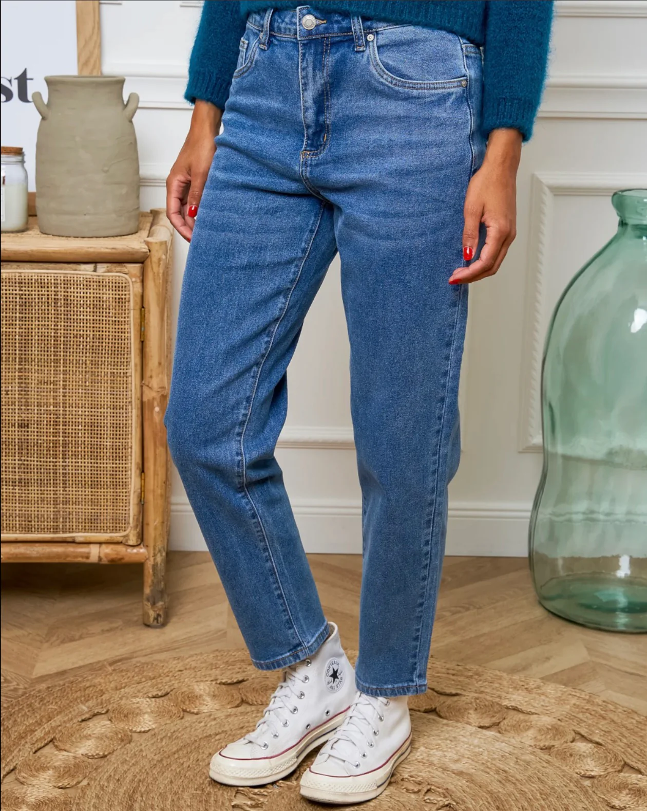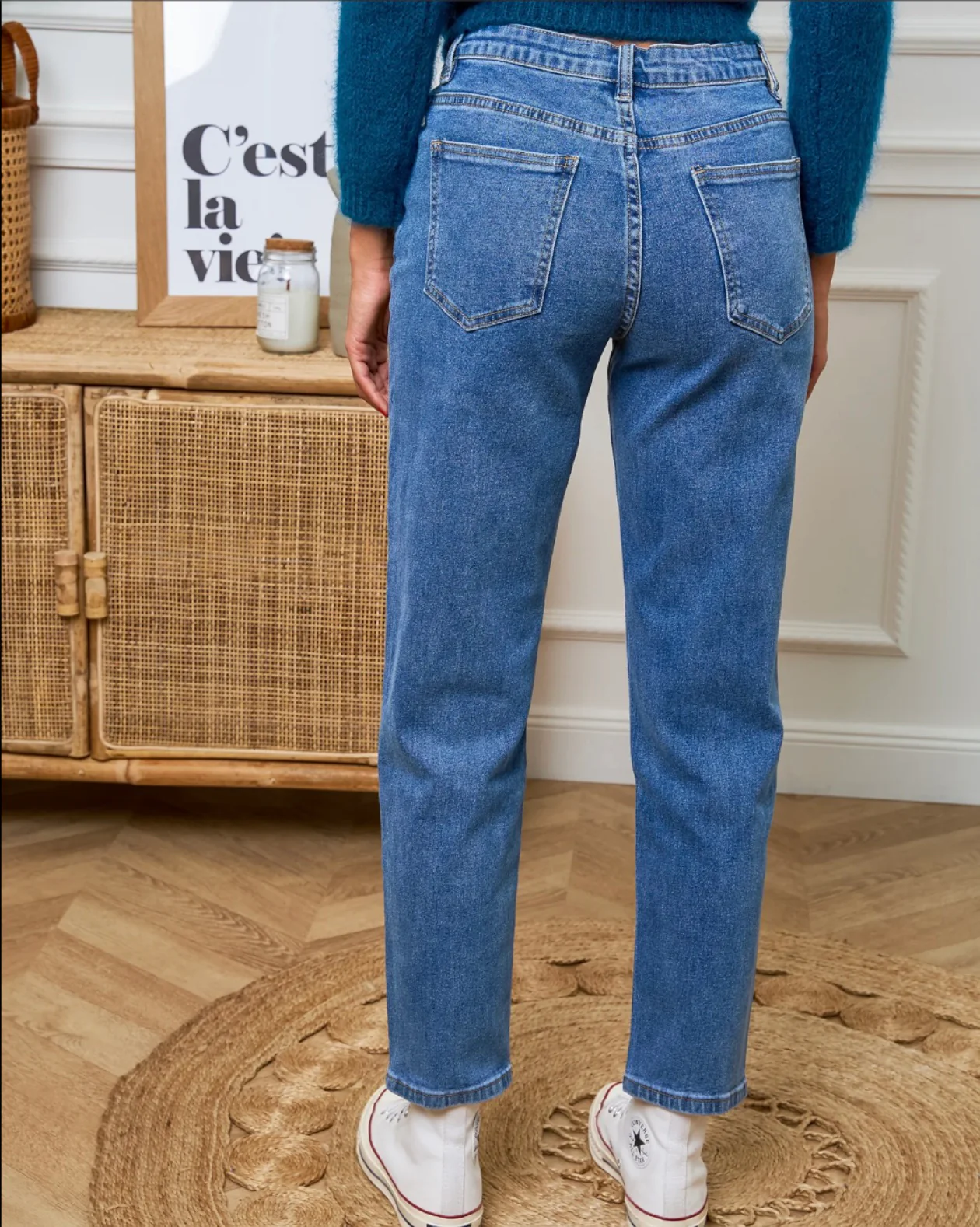 Jean mom, un incontournable au style vintage revisité. Sa coupe flatteuse souligne la taille et offre une aisance confortable sur les hanches et les jambes.