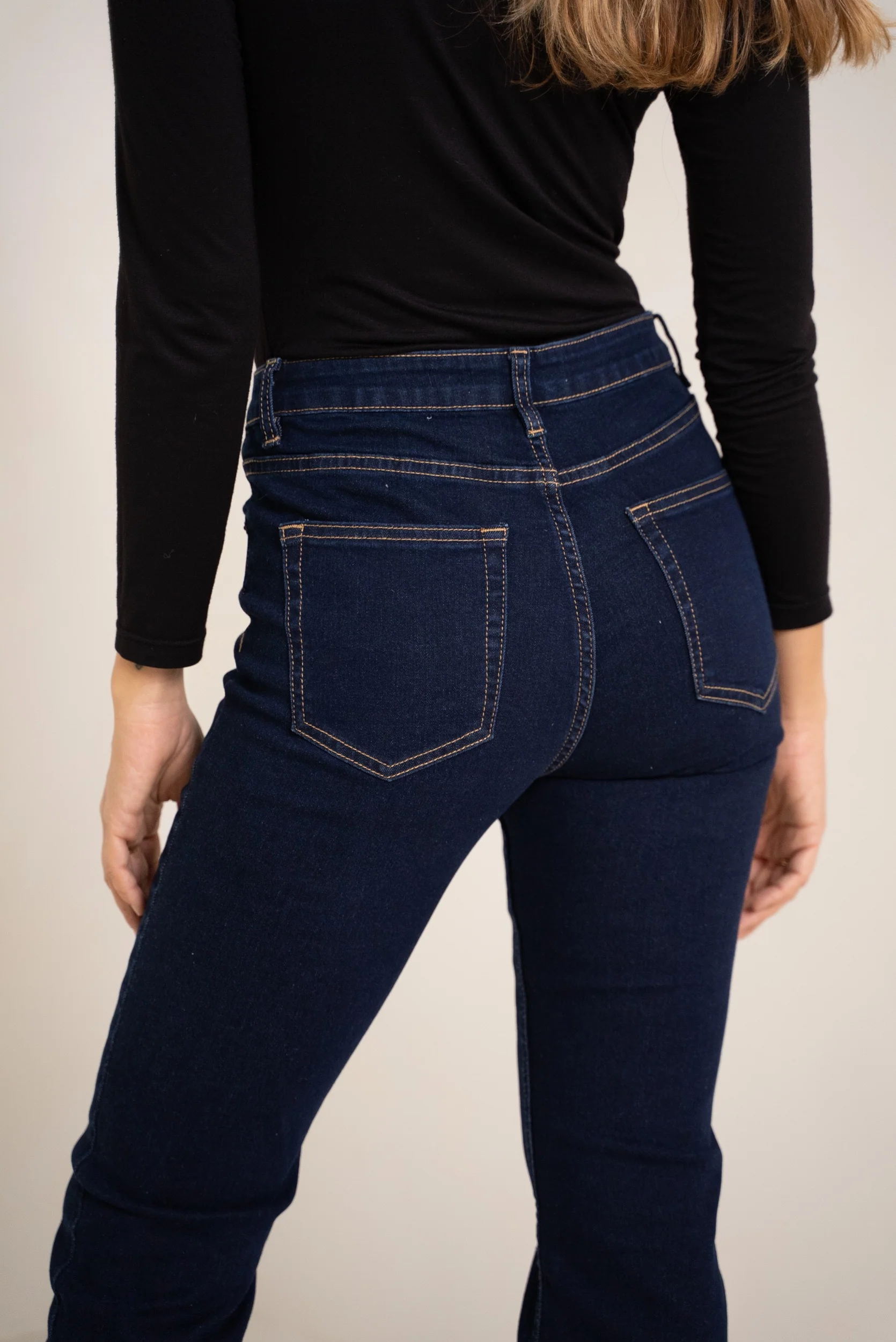 Jean flare taille haute à la coupe flatteuse, conçu pour allonger la silhouette tout en mettant en valeur les courbes. Ce modèle combine élégance et confort, parfait pour un look casual chic ou plus habillé.