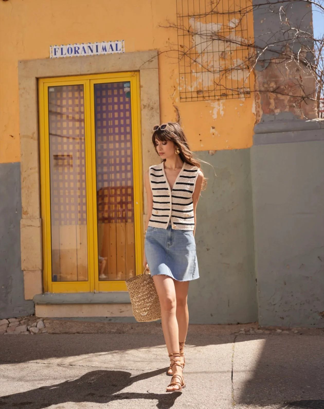Jupe en denim à l’allure féminine et casual, idéale pour un look de tous les jours avec une touche chic. Sa coupe flatteuse met en valeur la taille tout en offrant un joli volume dans le bas.