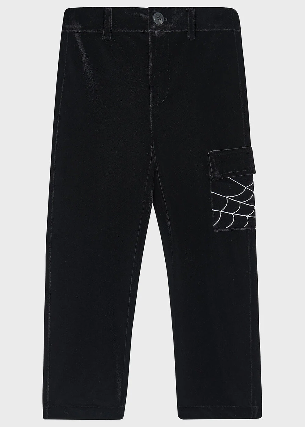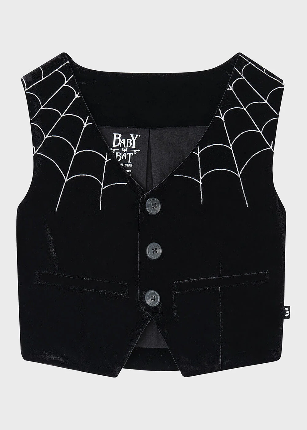 Votre mini-morcelot doit rapidement se familiariser avec le style Effrayant-Chic! Que ce soit pour votre propre petit monstre ou comme présent, votre cœur sombre fondra pour cet adorable ensemble 2 pièces : comprenant un gilet et un pantalon. Fabriqués tous deux en velours doux avec une légère extensibilité, chacun des éléments est paré de magnifiques broderies en forme de toiles d’araignée. Qui pourrait résister?