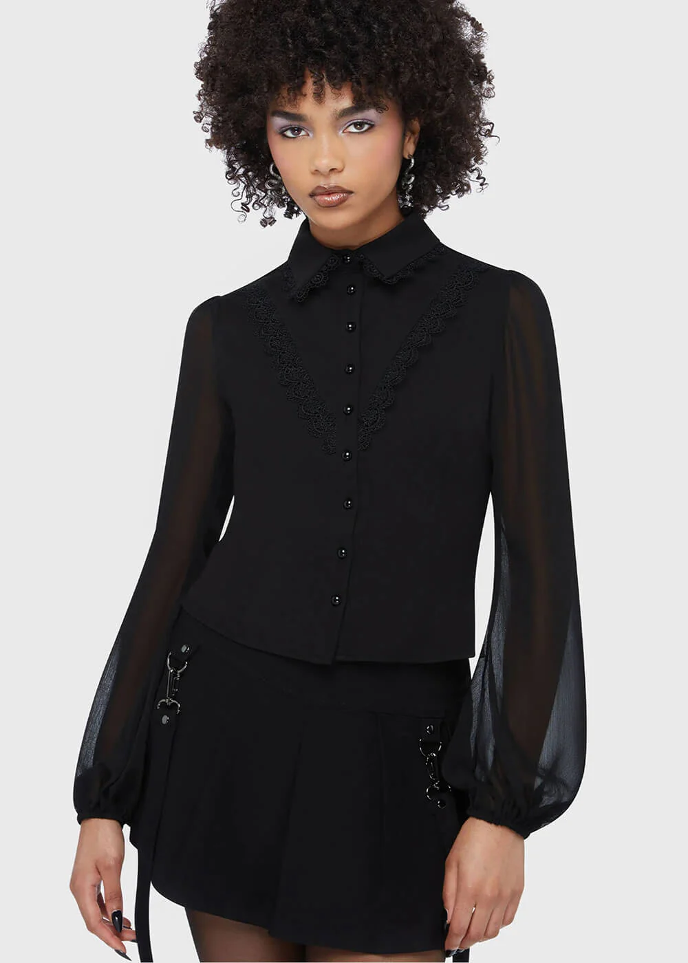 Pour un rendu « chic » à votre manière, ce chemisier est l’allié idéal. Twill structuré pour une coupe nette, manches en chiffon fluides pour le mouvement et dentelle discrète qui apporte juste ce qu’il faut de mystère. Quand ce chemisier vous manque, vous devenez Miss Mourning ♥