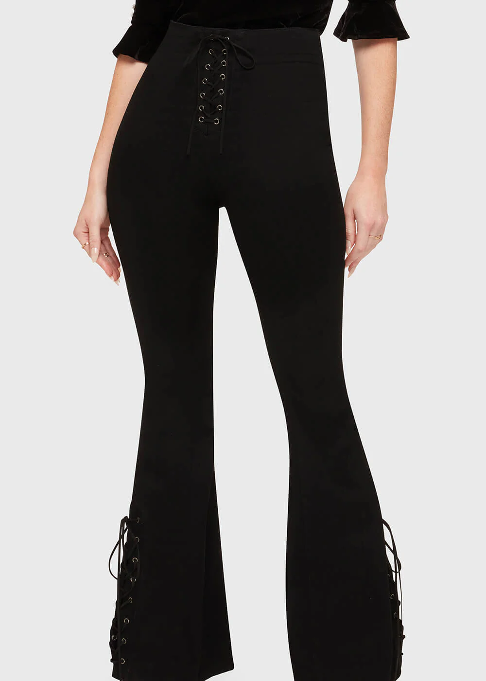 – Fermeture fonctionnelle à lacets en suédine synthétique avec anneaux argentés à la taille et sur la jambe