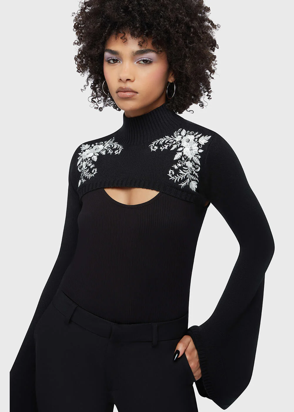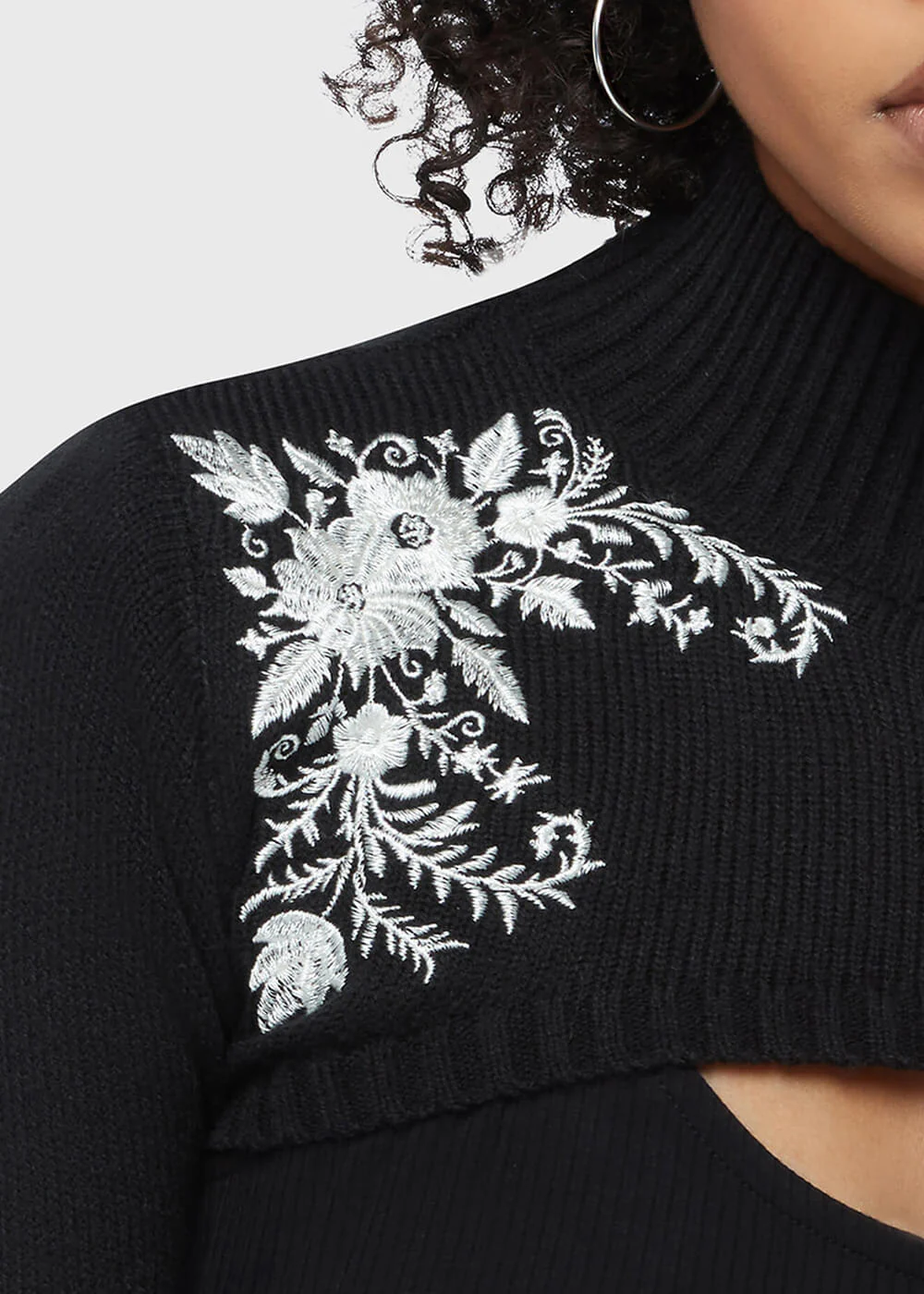 Un boléro qui se ressent comme une étreinte chaleureuse, mais qui semble tout droit sorti d’un conte gothique… Petal & Pine marie une maille douce et extensible à des broderies florales et épineuses à l’effet nacré — doux et mordant, juste ce qu’il faut 🖤