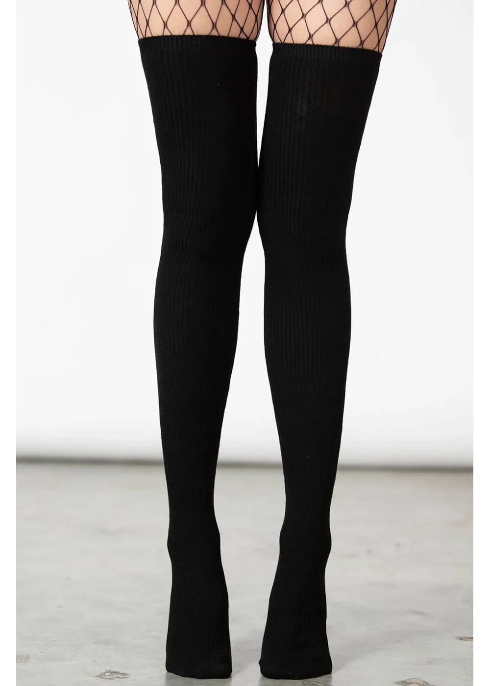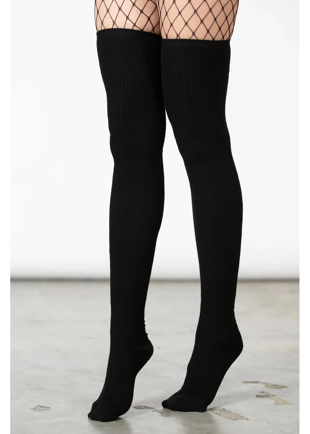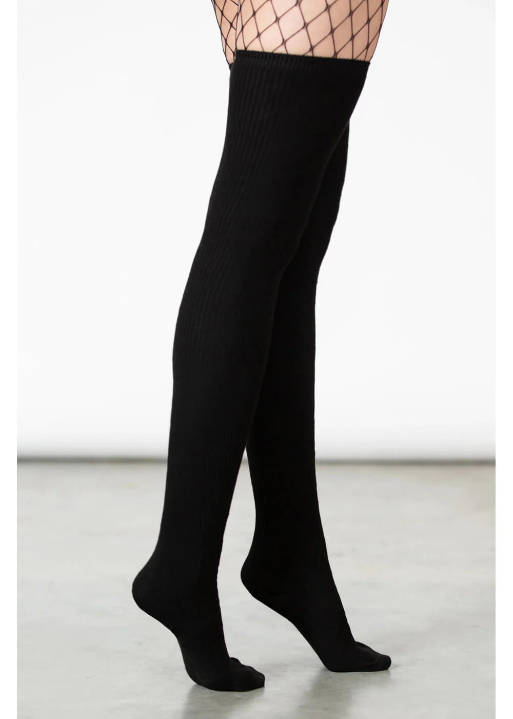 Deze lange sokken zijn gemaakt van een zachte, geribbelde katoen-mix, en geven met haar extra lange, over-de-knie lengte jouw benen een duivels goede look.
