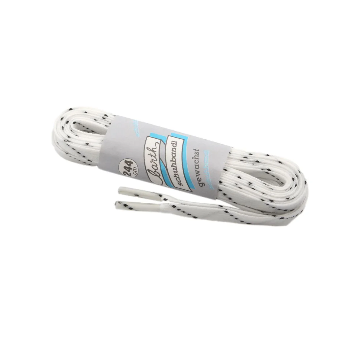 Nous proposons des lacets pour patins ou hockey sur glace non cirés en 6 couleurs différentes – et une version cirée en blanc.