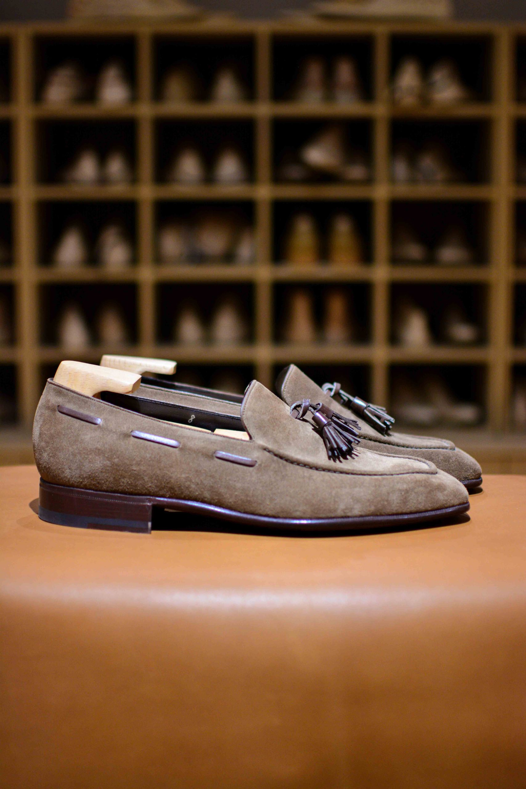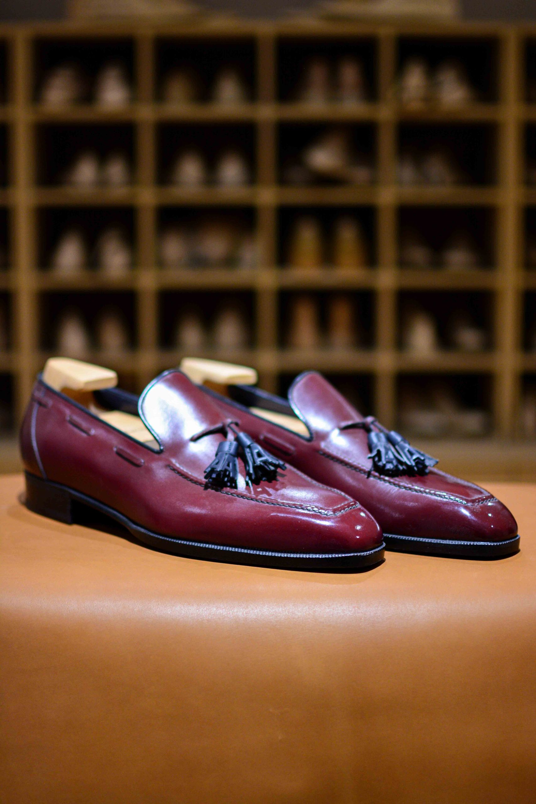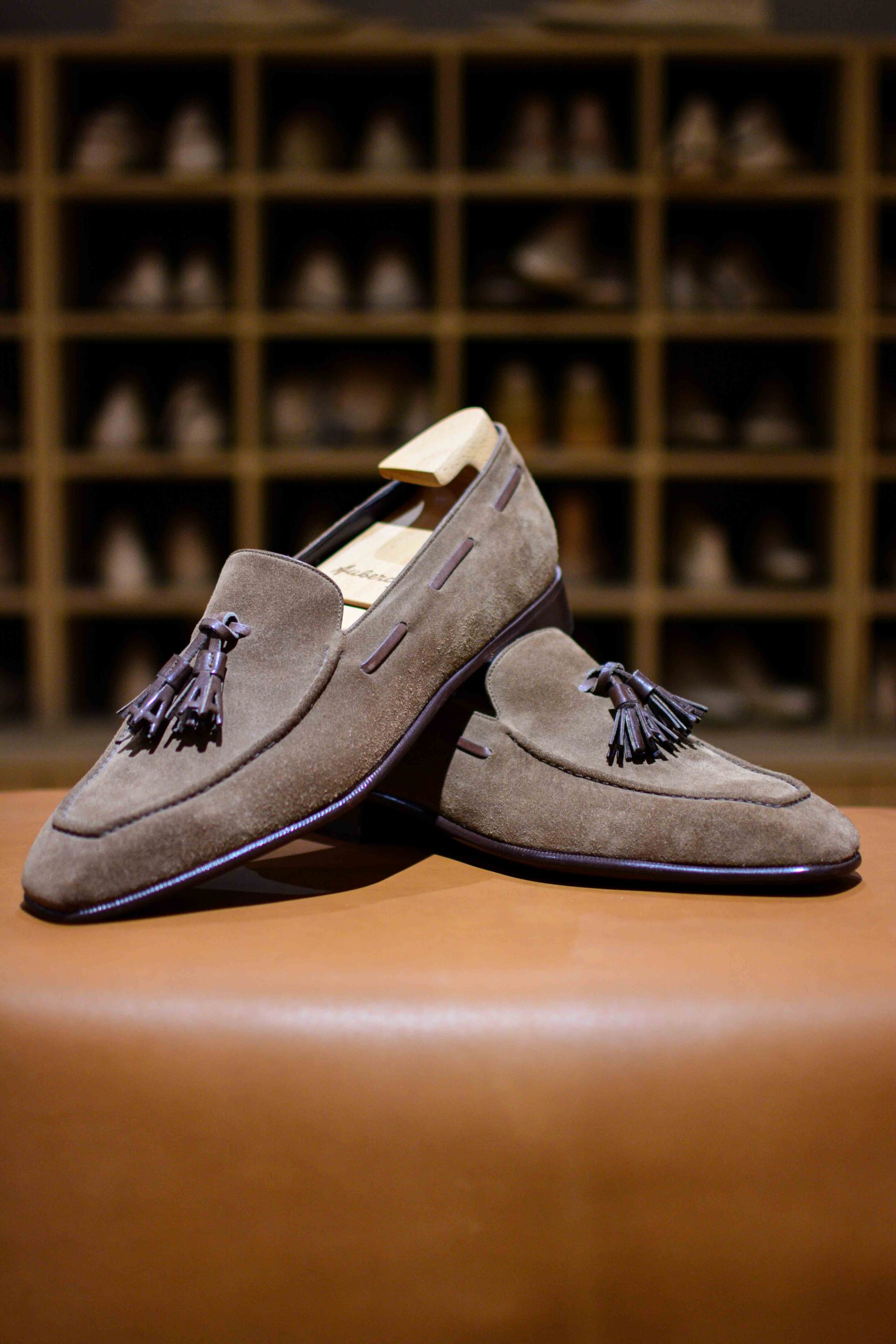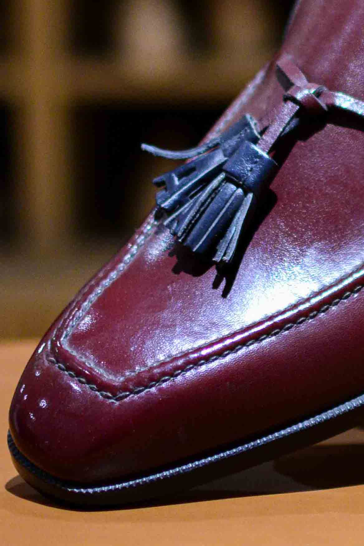 Son passepoil tout autour de la tige et ses pampilles en « A » lui donnent le caractère d’un véritable « Tassel Loafer » Aubercy.