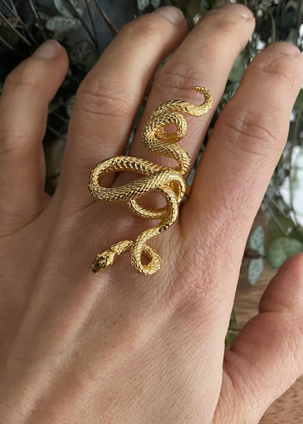 Élégante et pourtant opulente, cette bague serpent plaquée or 14 carats est spectaculaire ! Cette œuvre d’art lumineuse est fabriquée à la main à Paris et ajoute une touche de charme à votre tenue, qu’elle soit sobre ou éclectique. Une chose est sûre : vous serez inoubliable !