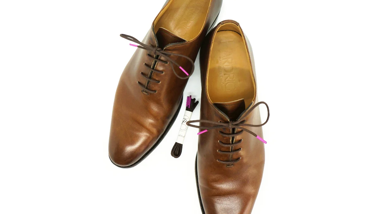 Les lacets Marron & Rose Fuchsia se coordonnent parfaitement avec les boutons de manchette Baril Rose Fuchsia et Nœud Rose Fuchsia.
