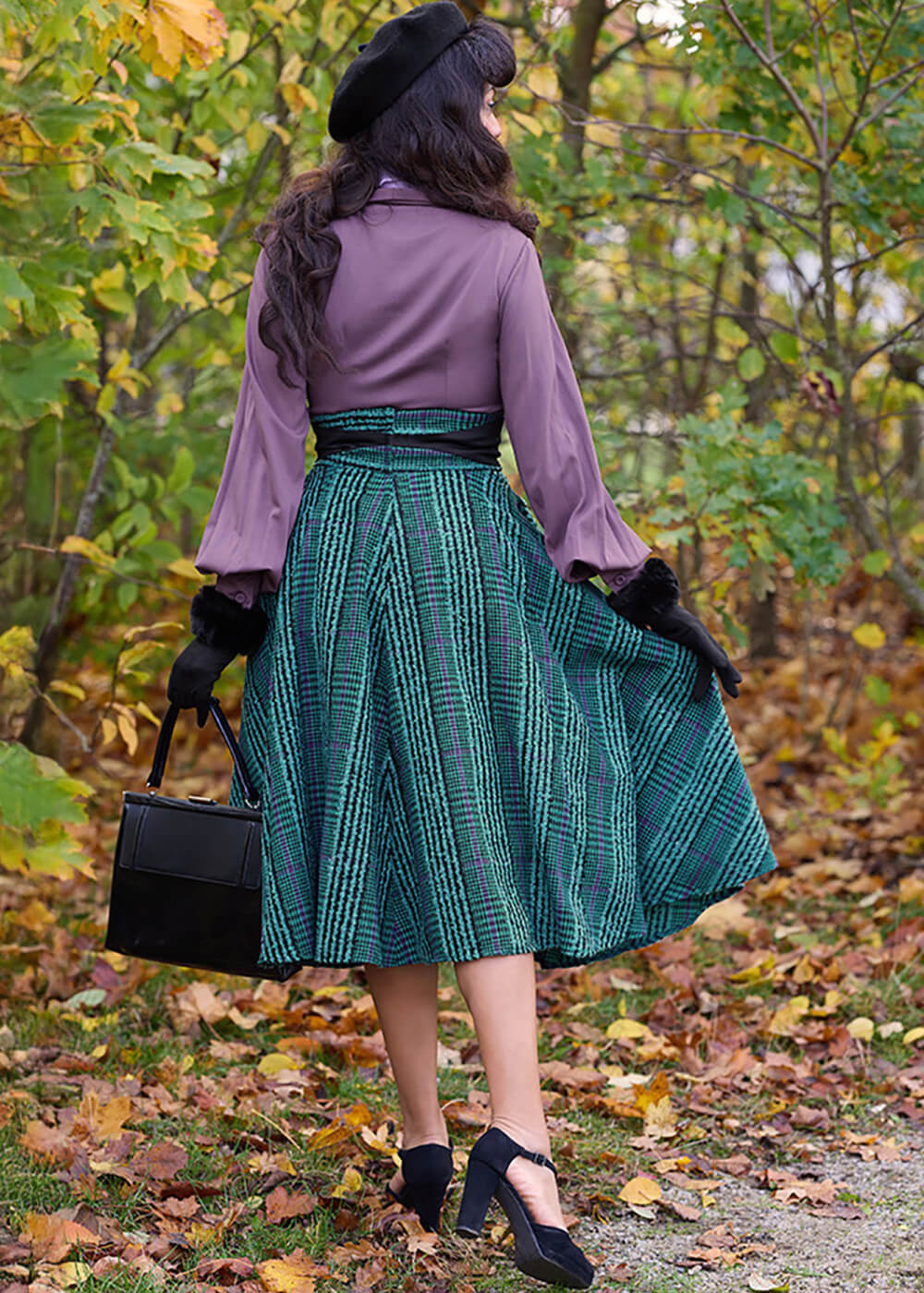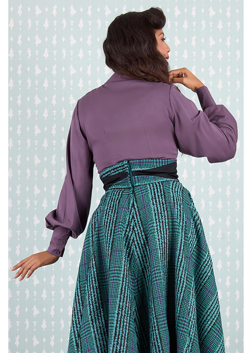 Miss Candyfloss dans sa version vintage ultime : Arien est une beauté au coloris splendide, même les boutons sont recouverts du même tissu.rnrnÀ porter casual-chic sur un pantalon ou élégamment cintrée à la taille : les coutures princesse et les manches longues bouffantes offrent ce look années 40 parfait pour briller en réunion comme en soirée ♥rnrn- Confectionnée en rayonne avec une très légère élasticitérn- Fermeture par boutons recouverts devant et aux poignetsrn- Coutures princesse pour une belle coupern- Longueur environ jusqu’aux hanchesrn- Manches longues bouffantesrn- 98% rayonne, 2% élasthannern- Lavage en machine à 30°C, ne pas utiliser le sèche-linge, repasser à basse température