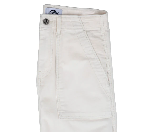 Pantalon couleur Crème de la marque ARNACOEUR Composition:100 % Coton Taille haute avec passants Deux Poches plaquées devant Deux poches boutonnées derrière Coupe: Mum Jeans De la marque française ARNACOEUR Fabrication: TUNISIE Ce modèle taille normalement. Lavage à 30° Pas de sèche linge