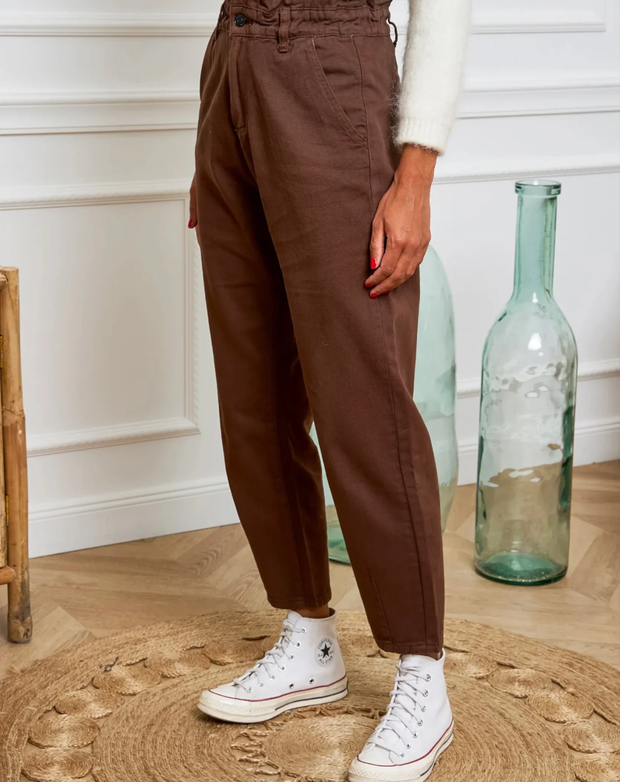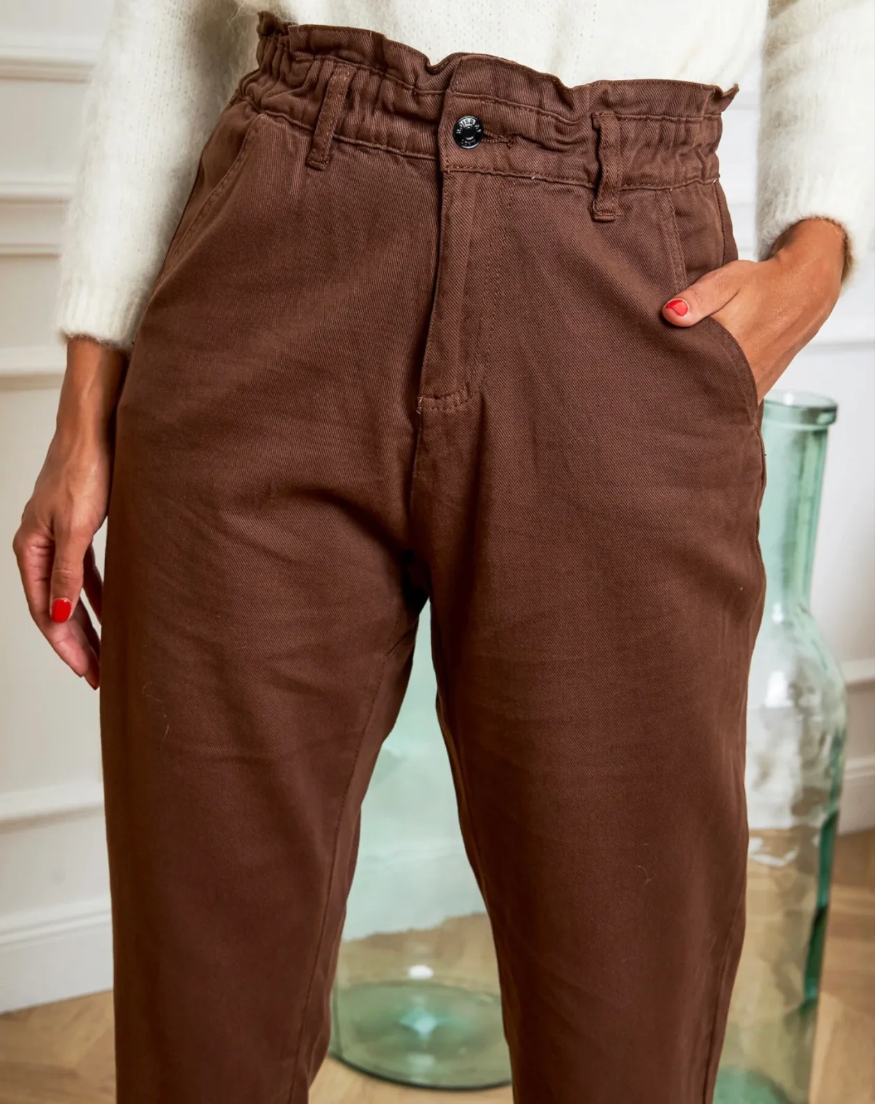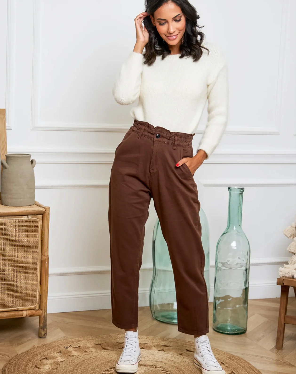 Ceinture : Taille haute avec bande élastique froncée, effet paperbag féminin