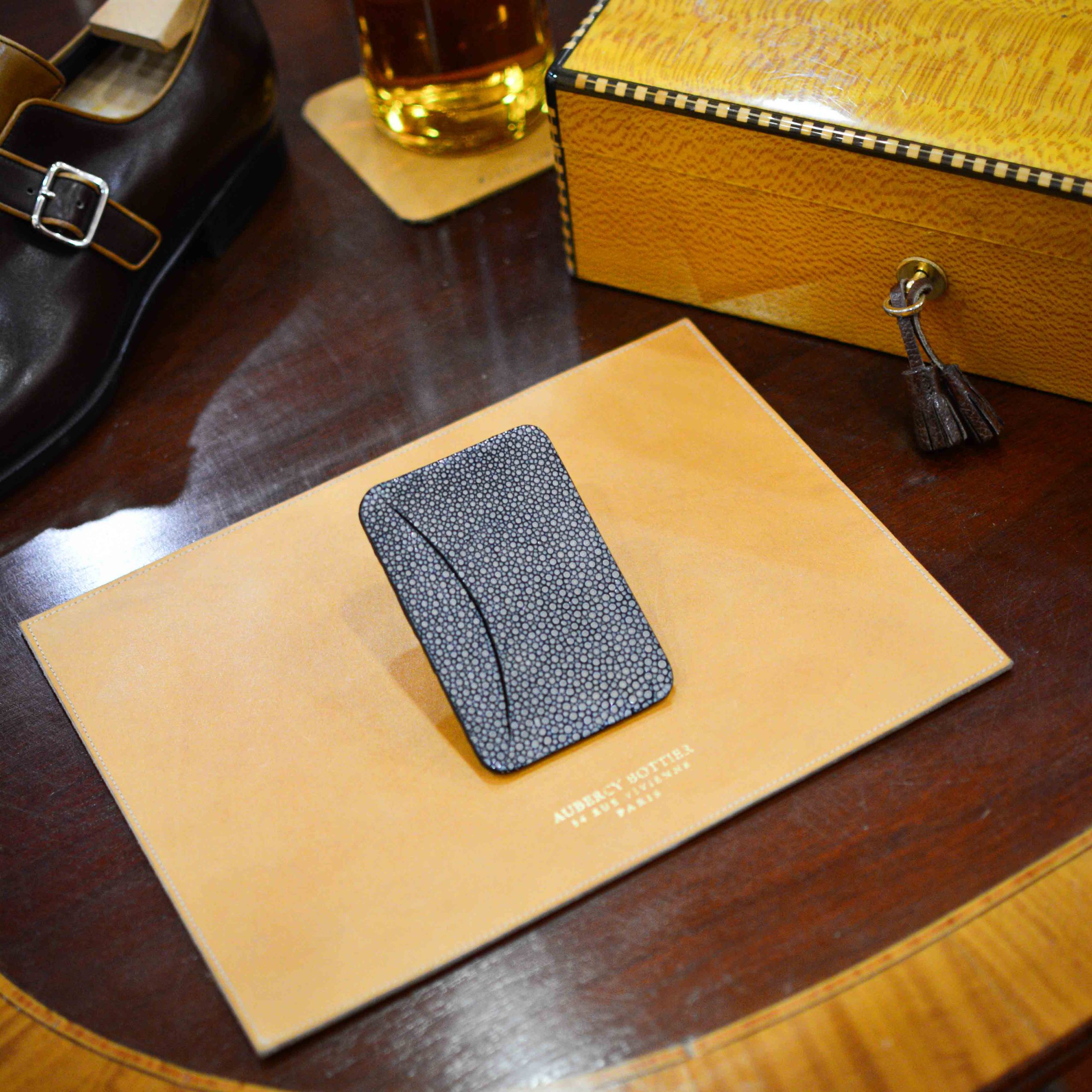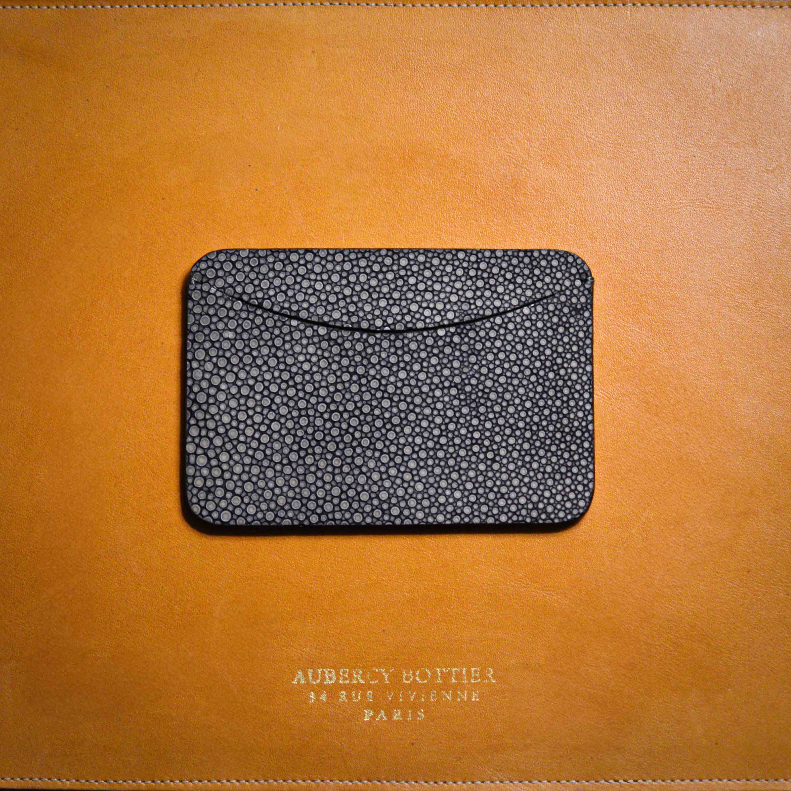 Ce porte-carte en galuchat de première qualité est conçu pour accueillir jusqu’à 4 cartes bancaire de taille standard.