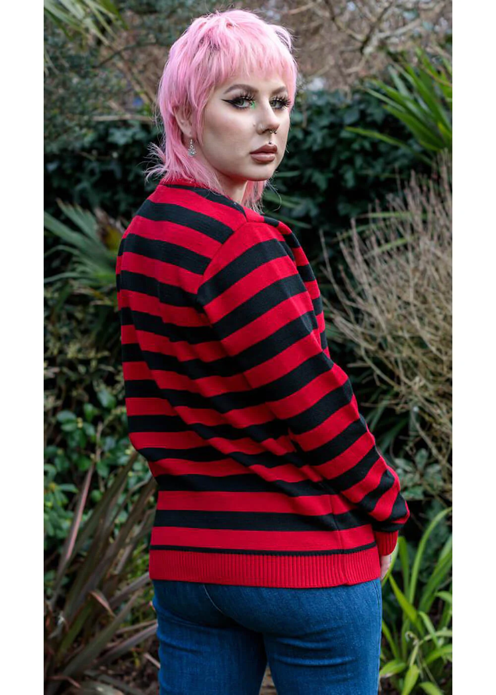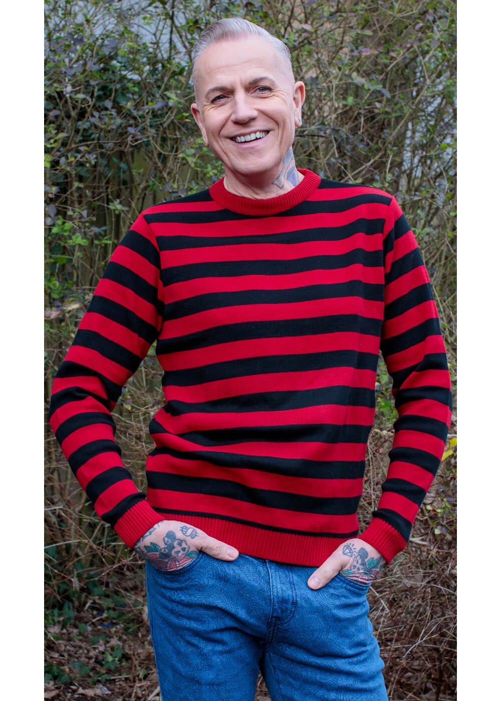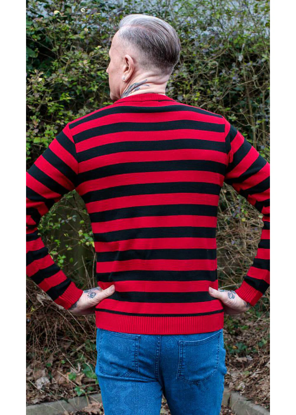 Pull Retro Rayé Années 70 Noir Rouge de Run and Fly
